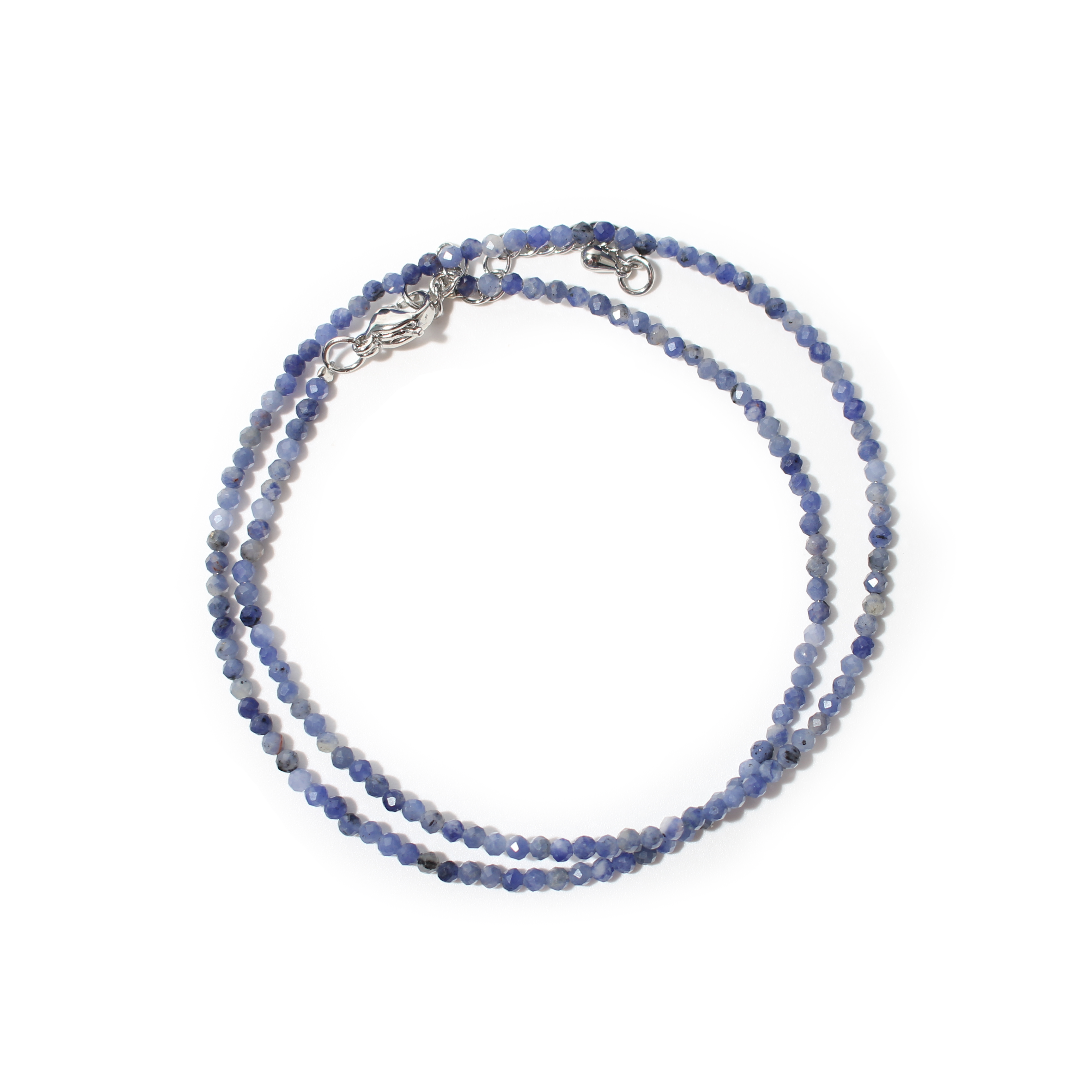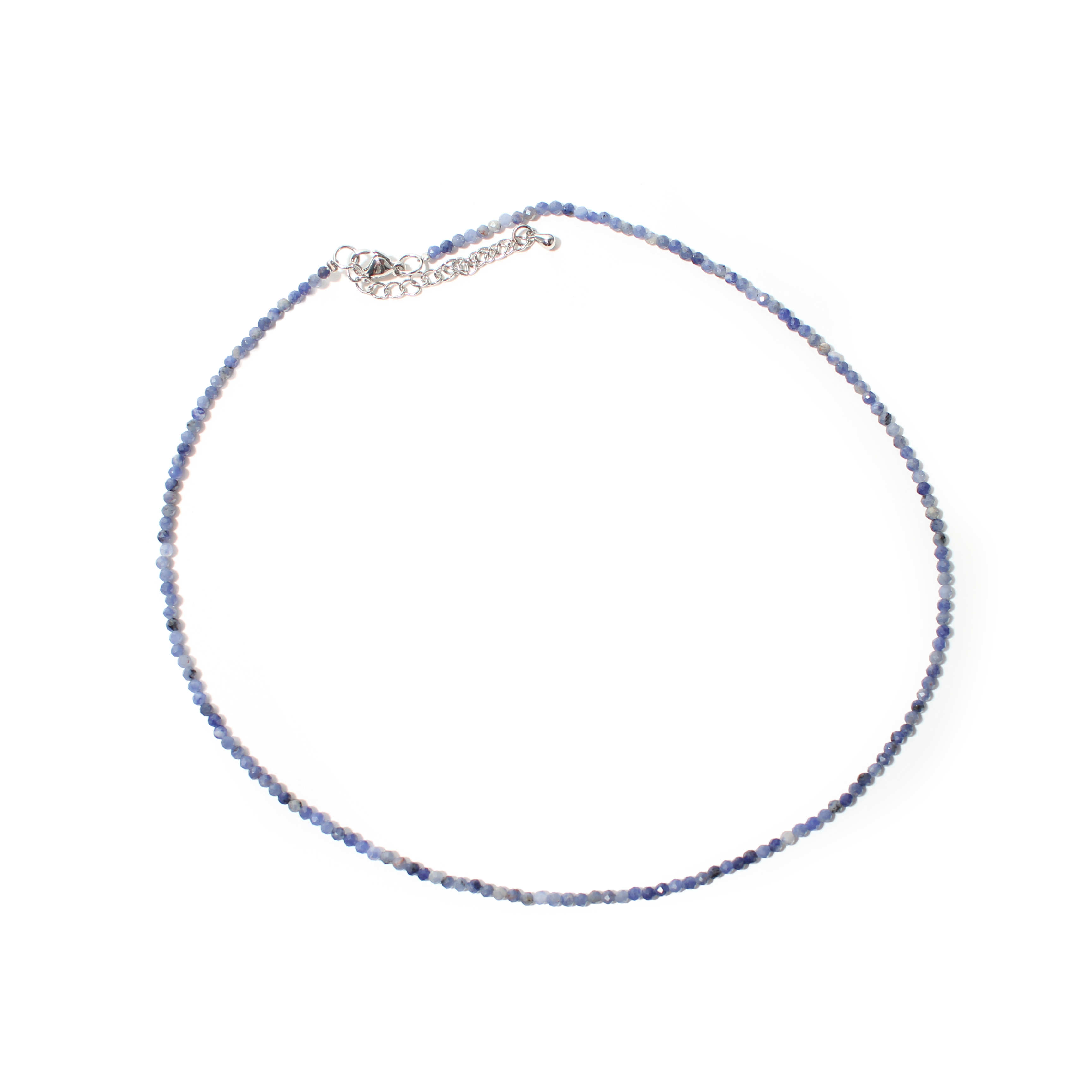 This Sodalite Bead Necklace features dainty 2–3mm beads in deep blue with white marbling, offering a calming, modern accent perfect for layering or everyday wear.