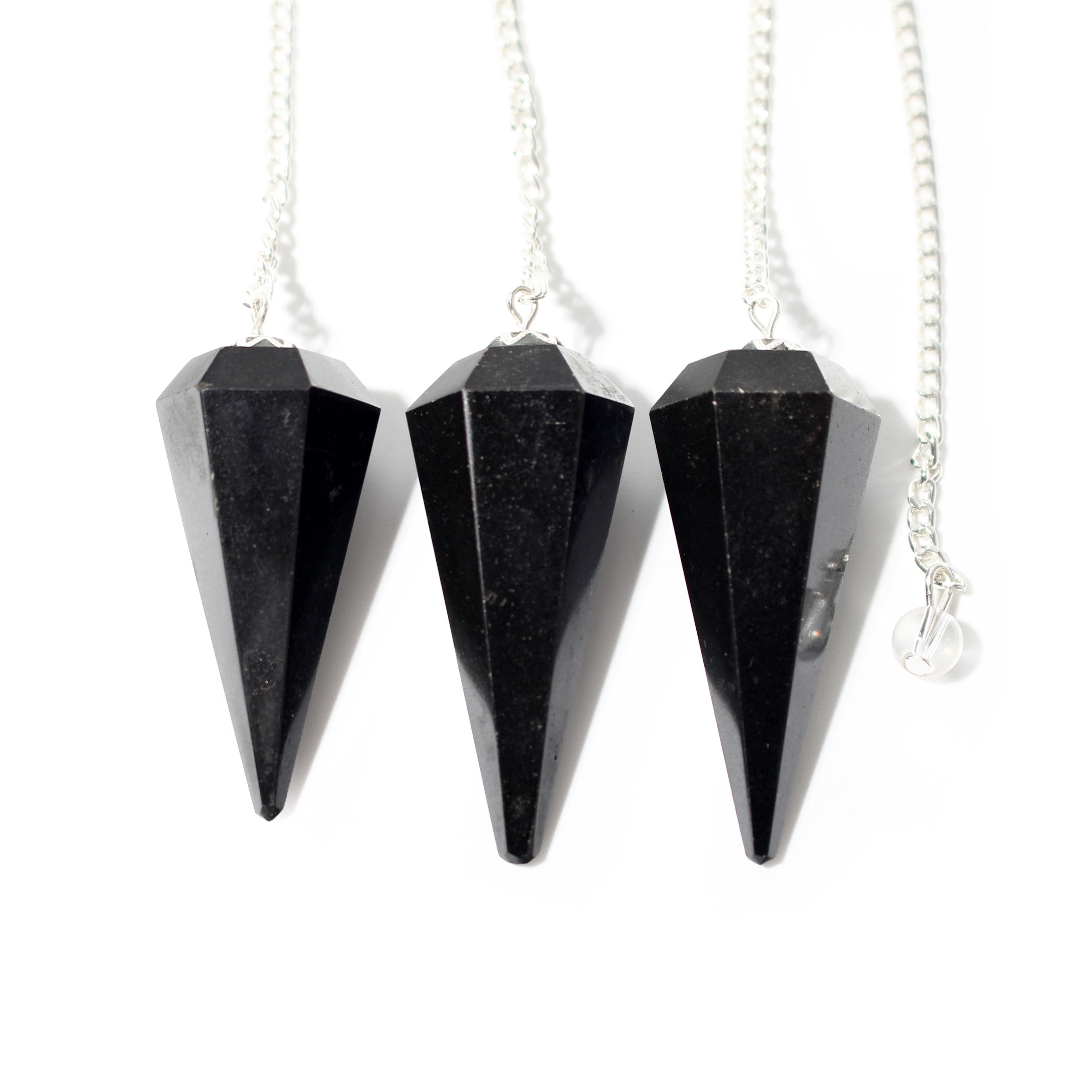 Each Black Tourmaline pendulum features a six-facet design and bead, ideal for grounding and protecting energy during spiritual work.