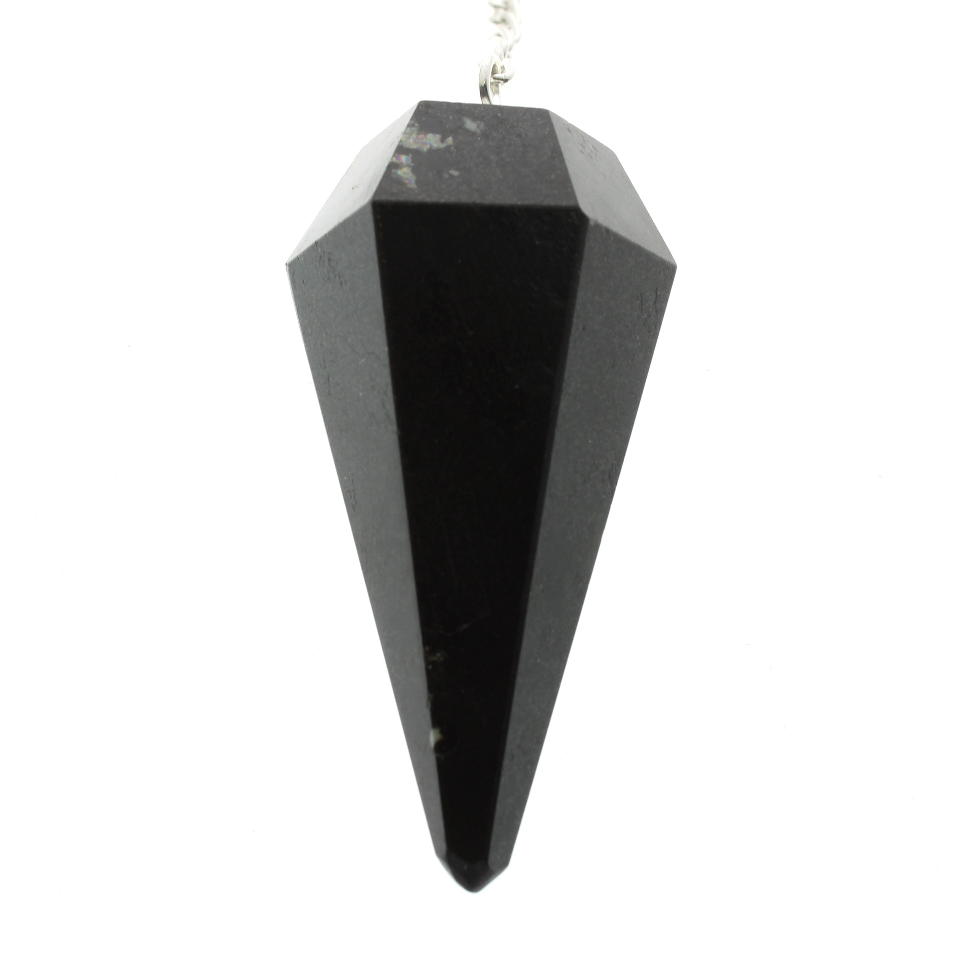 Black Tourmaline Pendulum 6 Facets & Bead