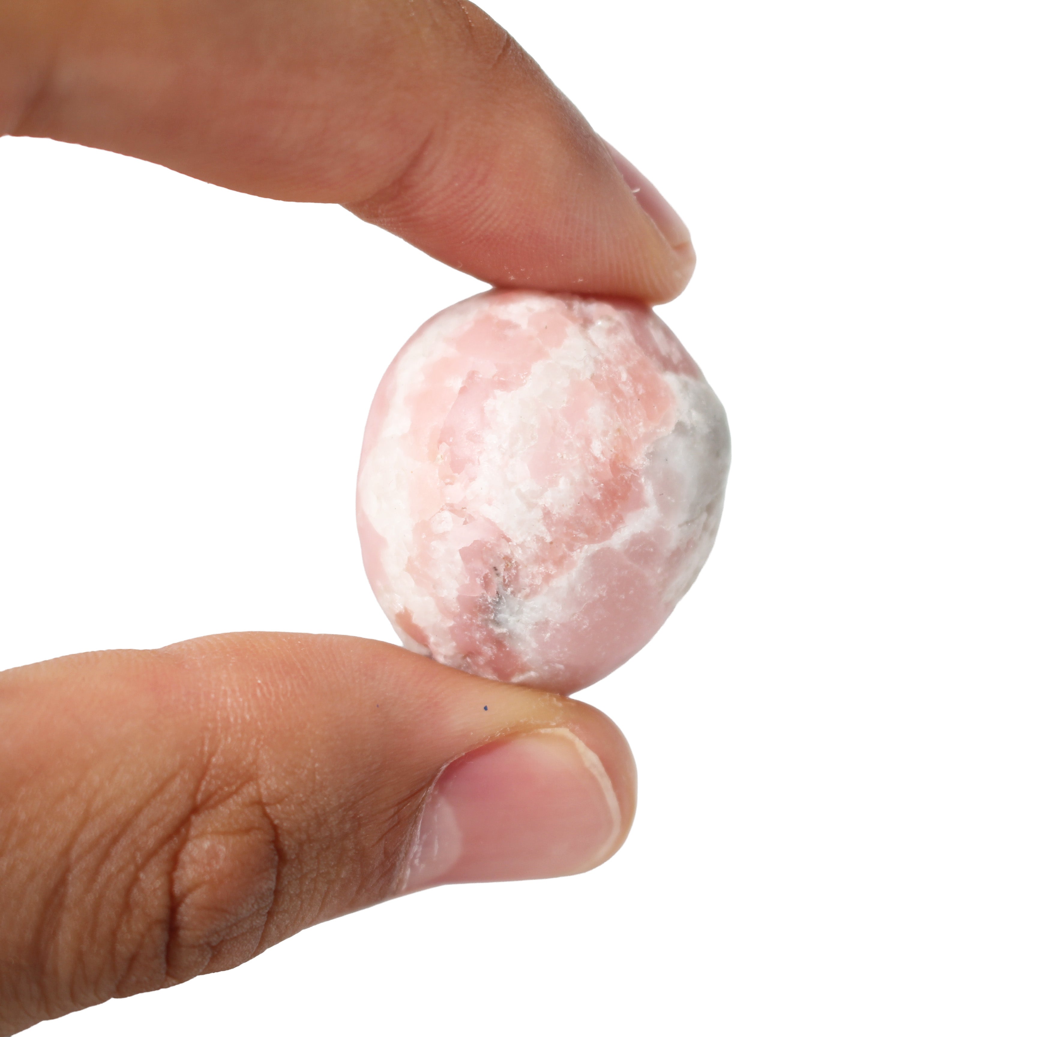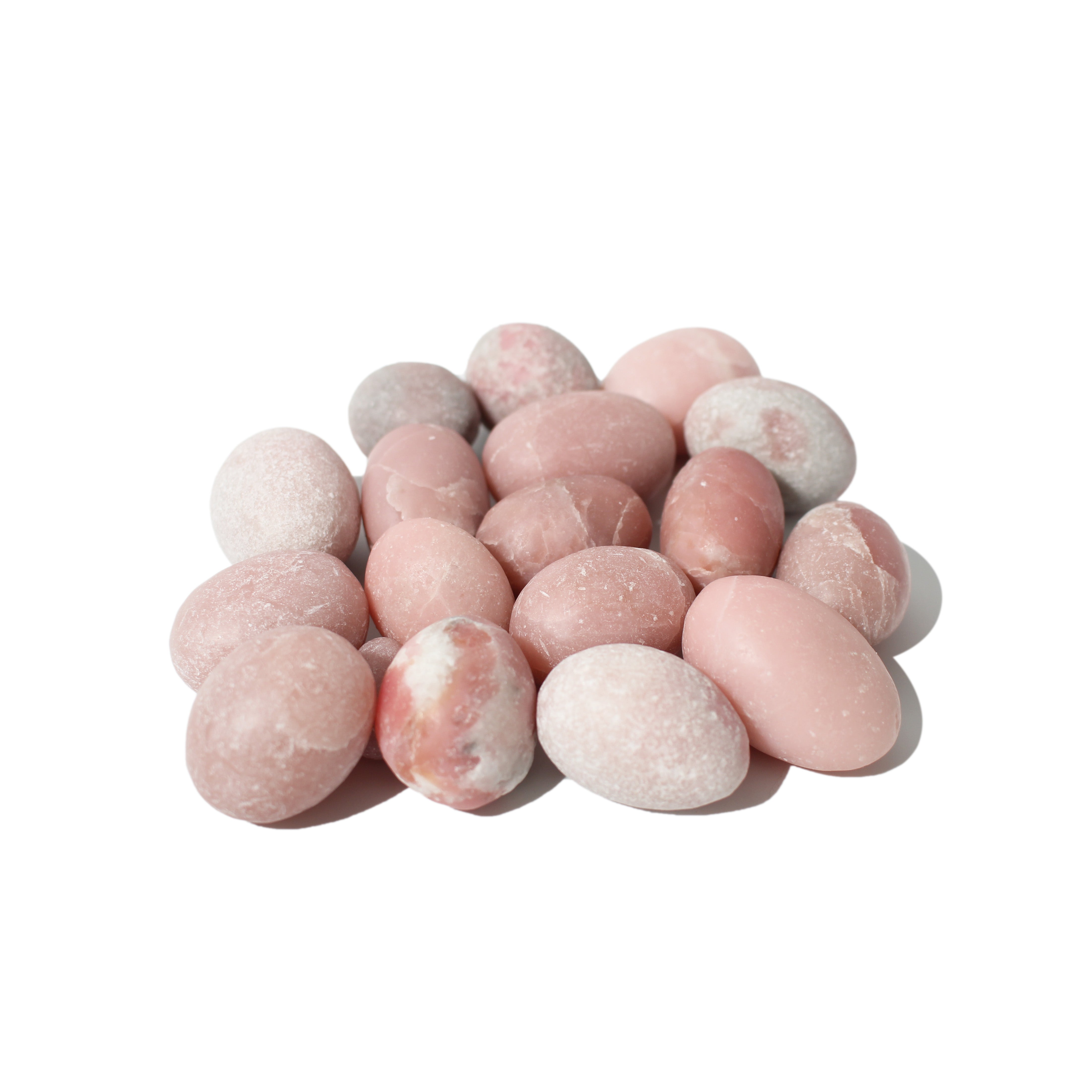 These Pink Opal B Tumbled Stones feature soft blush tones with creamy veining, polished smooth for a gentle, soothing feel. Each piece carries a tender, heart-centered energy that invites peace and emotional healing.