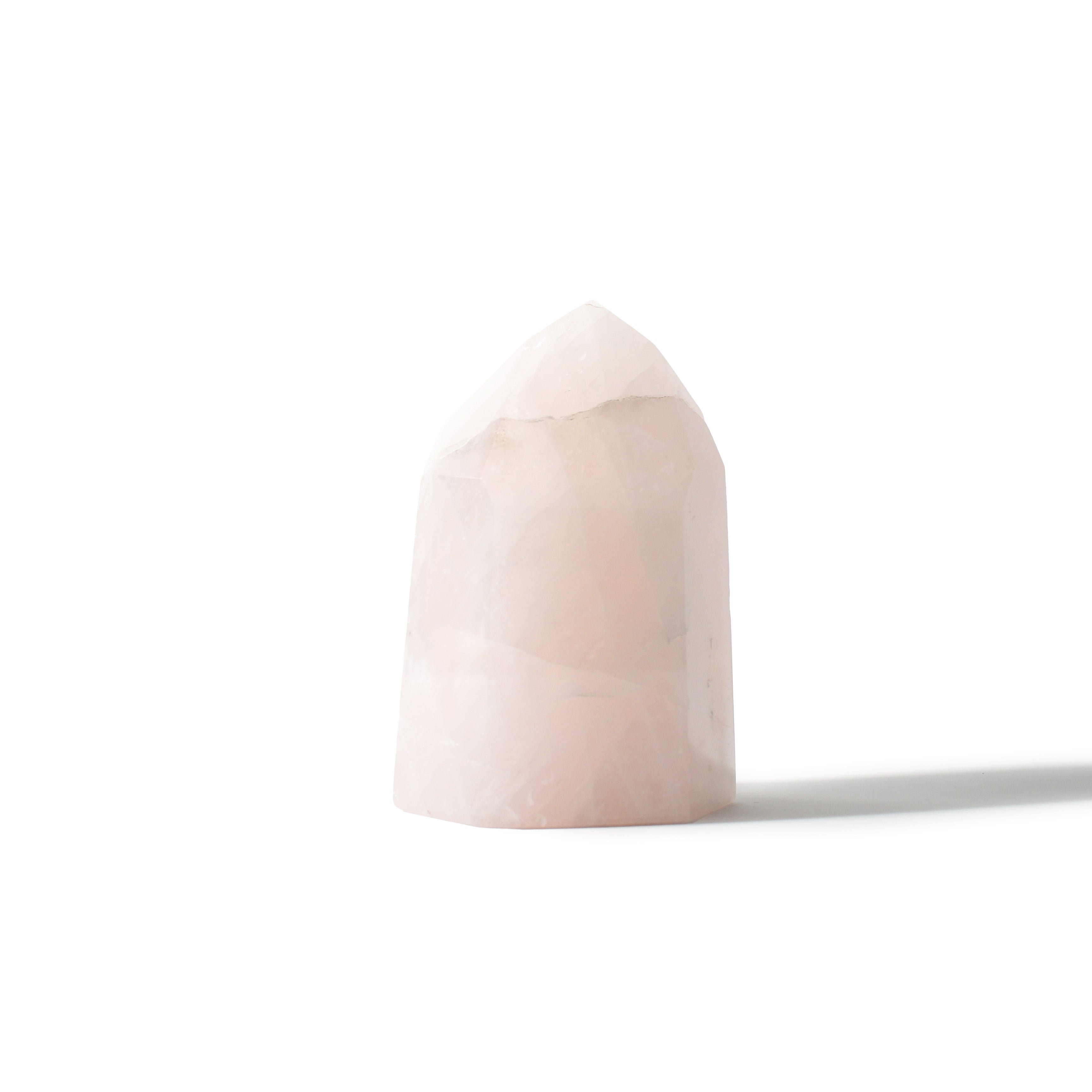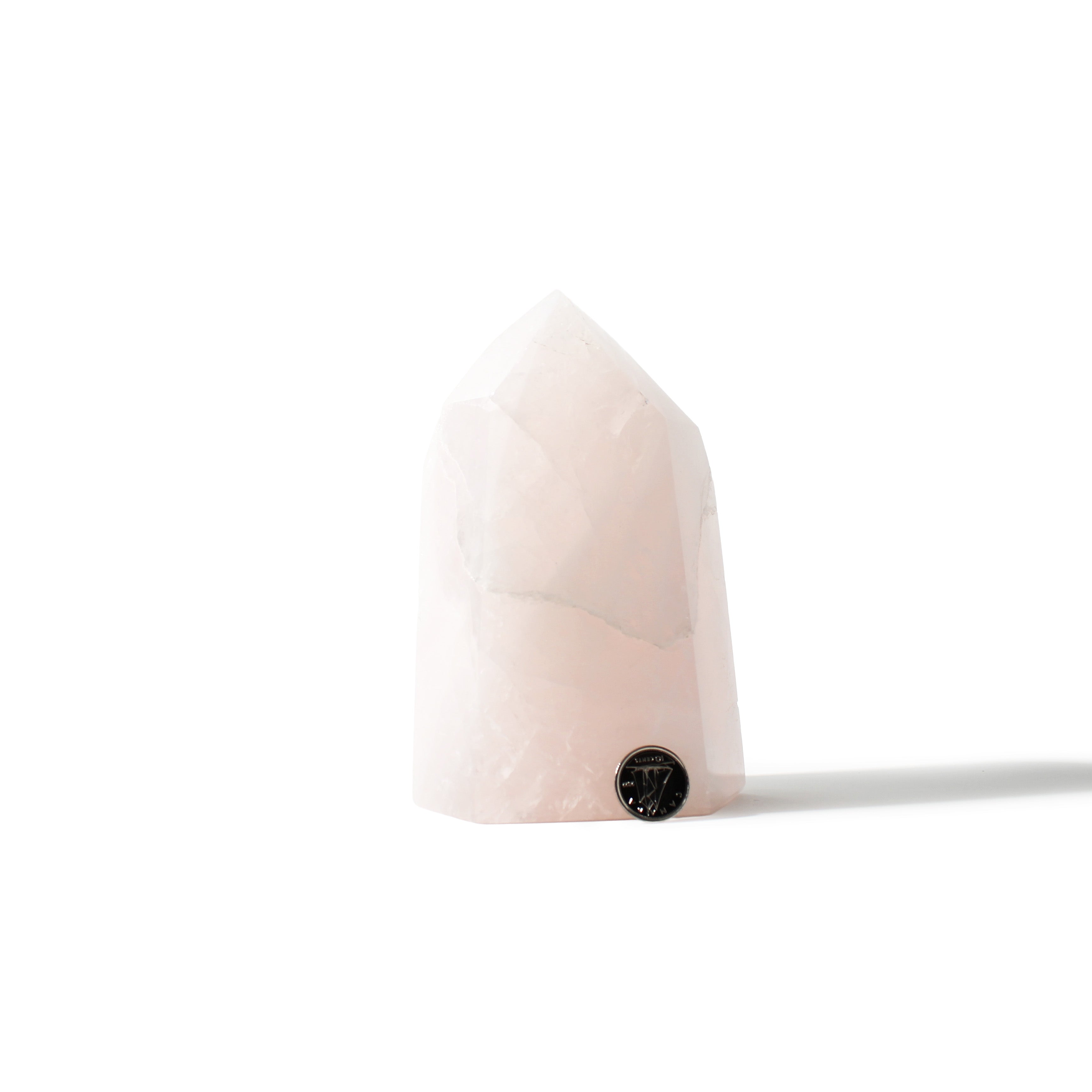 This Rose Quartz Generator stands 5 1/4" tall, showcasing soft blush-pink tones with gentle translucency, polished into a smooth, elegant point that radiates calming, heart-centered energy. Each piece highlights Rose Quartz's natural beauty and soothing presence.