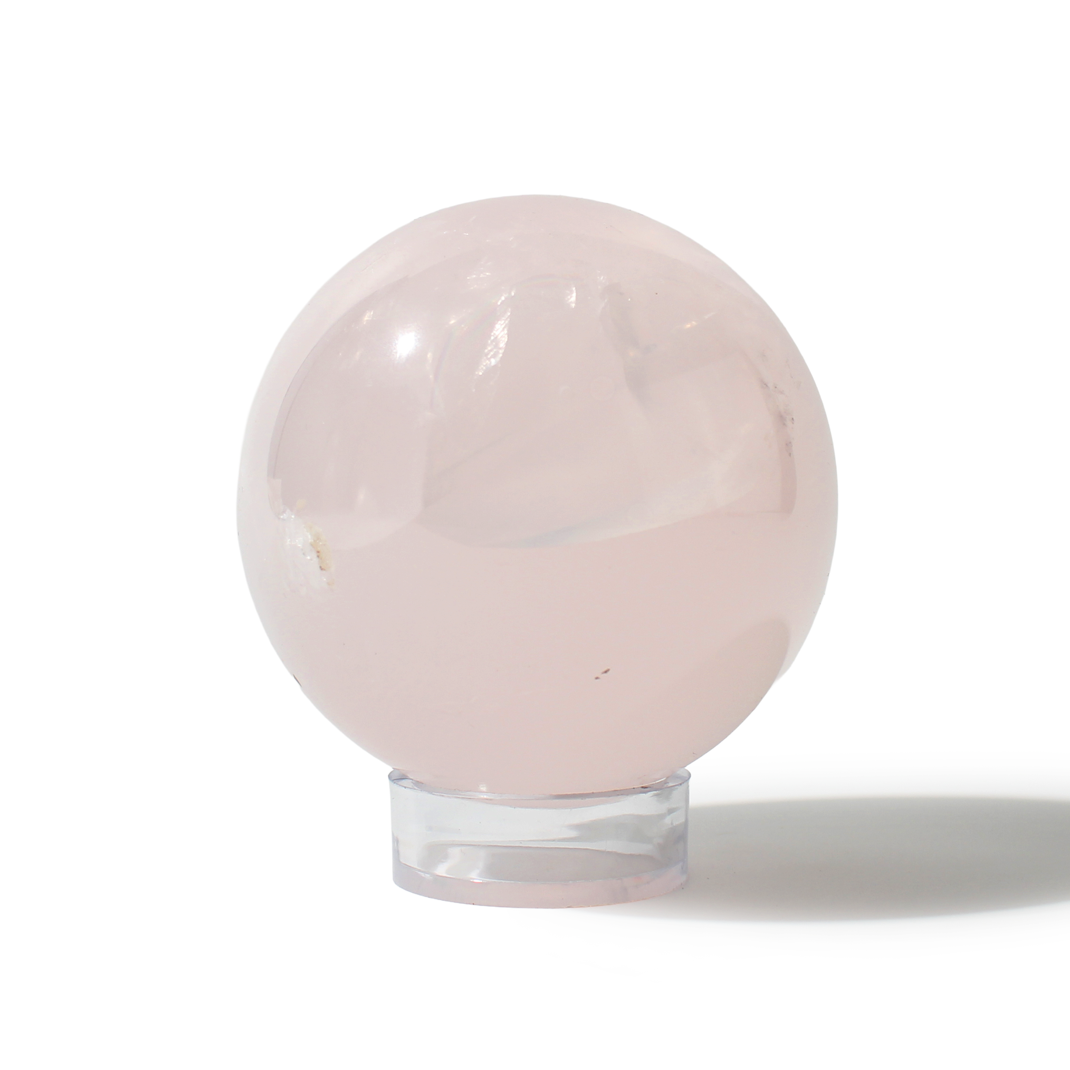 Rose Quartz Sphere Unique #129 - 3 5/8" across and features soft pink tones with a smooth, polished finish. Radiating gentle, loving energy in all directions, it’s ideal for emotional healing and heart-centered spaces.