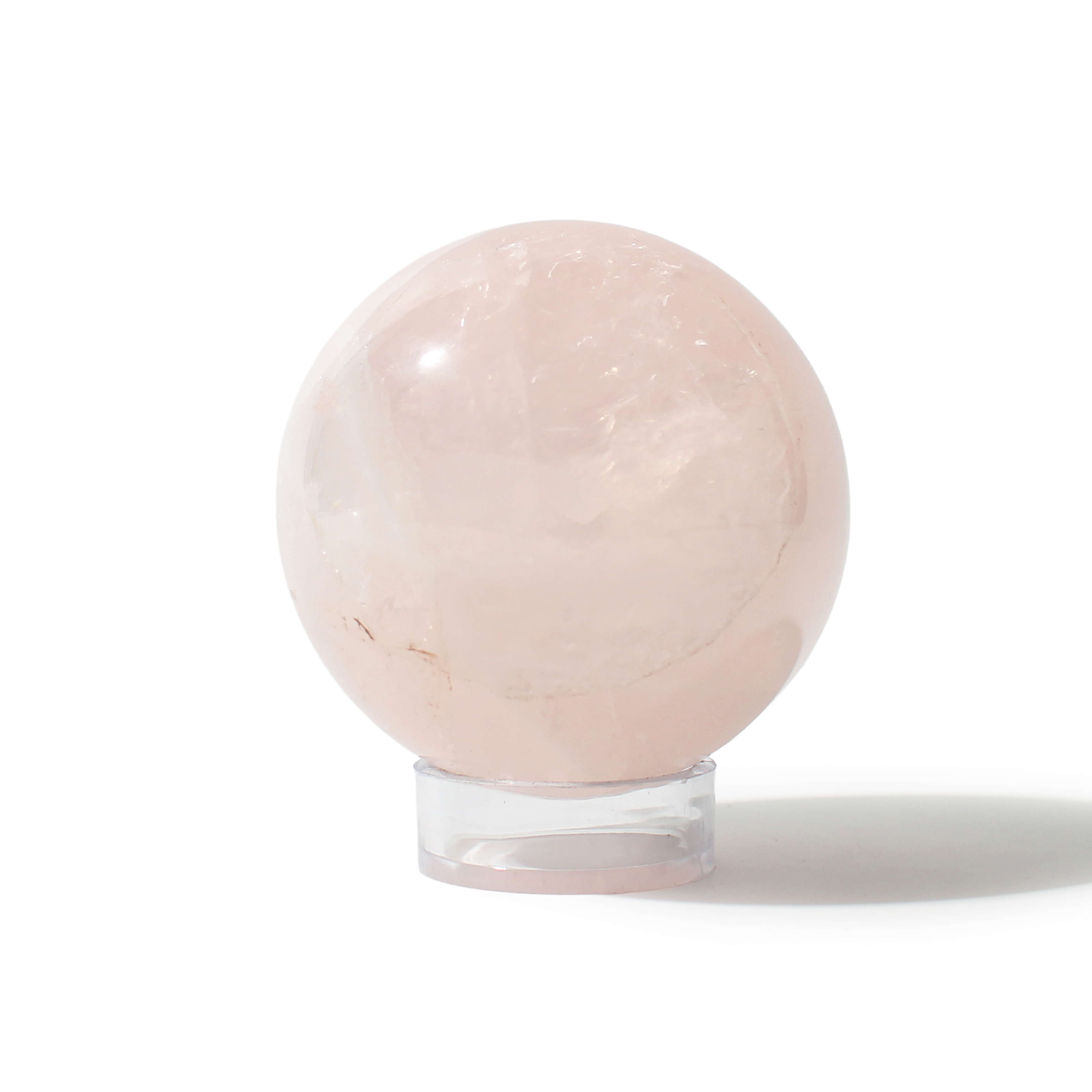 Rose Quartz Sphere Unique #178 - 3 1/4" across and features soft pink tones with a smooth, polished finish. Radiating gentle, loving energy in all directions, it’s ideal for emotional healing and heart-centered spaces.