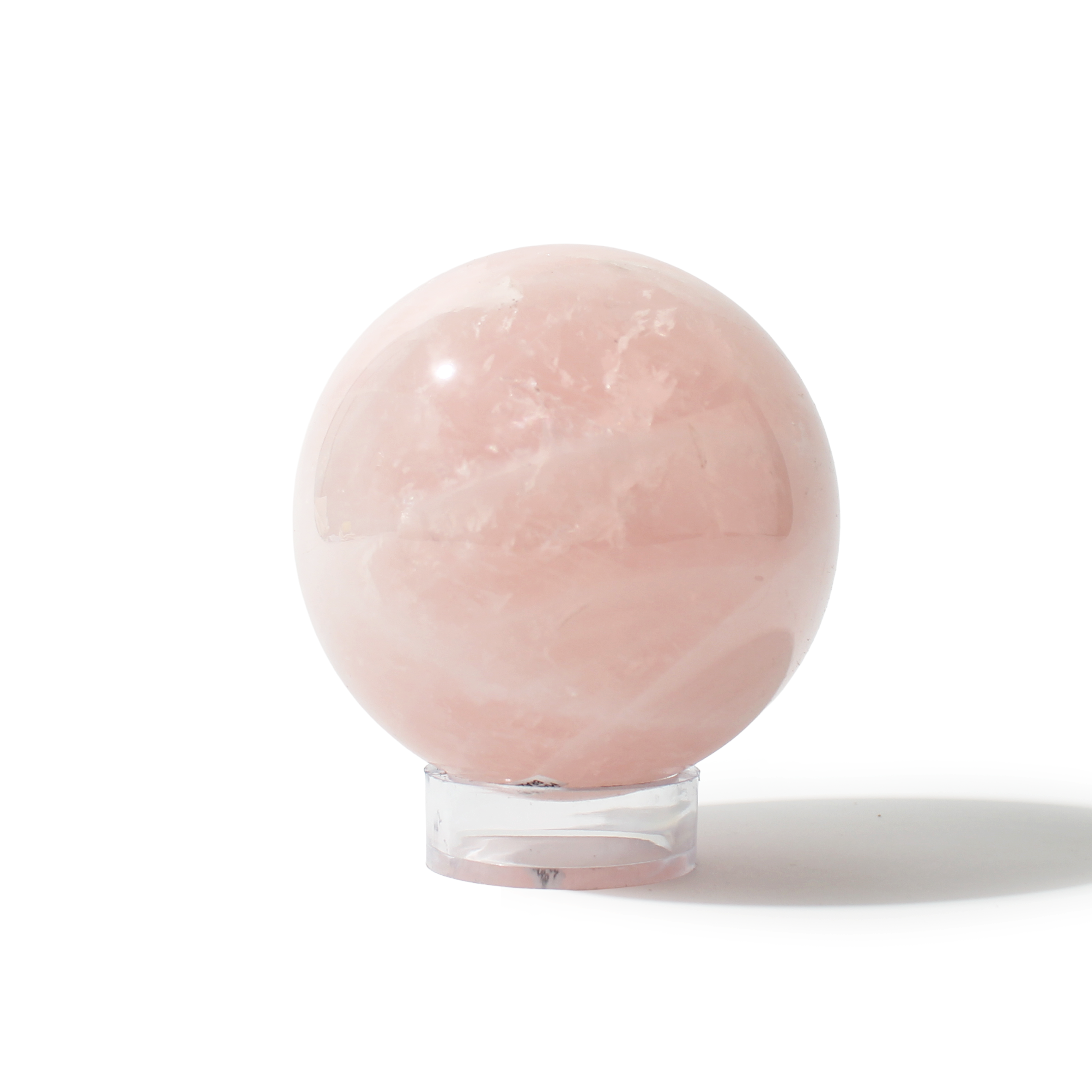Rose Quartz Sphere Unique #73 - 3 1/2" across and features soft pink tones with a smooth, polished finish. Radiating gentle, loving energy in all directions, it’s ideal for emotional healing and heart-centered spaces.