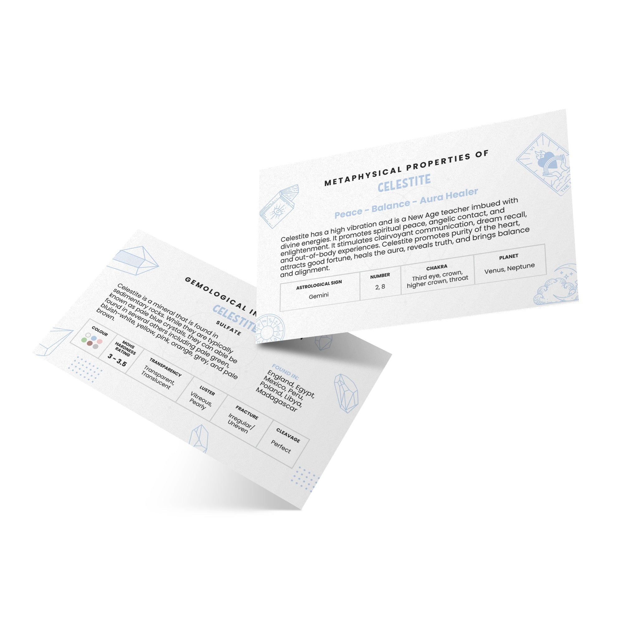 Skip the research with our Stone Meaning Cards - beautifully redesigned and packed with info. This pack contains 10 cards about one stone, including gemological details, metaphysical benefits, astrological ties, and more. Like a "Nutrition Facts" label for crystals, these cards are perfect for collectors, sellers, and spiritual seekers alike. No logos, no sign-ups. Just clear, accessible crystal knowledge at your fingertips.
