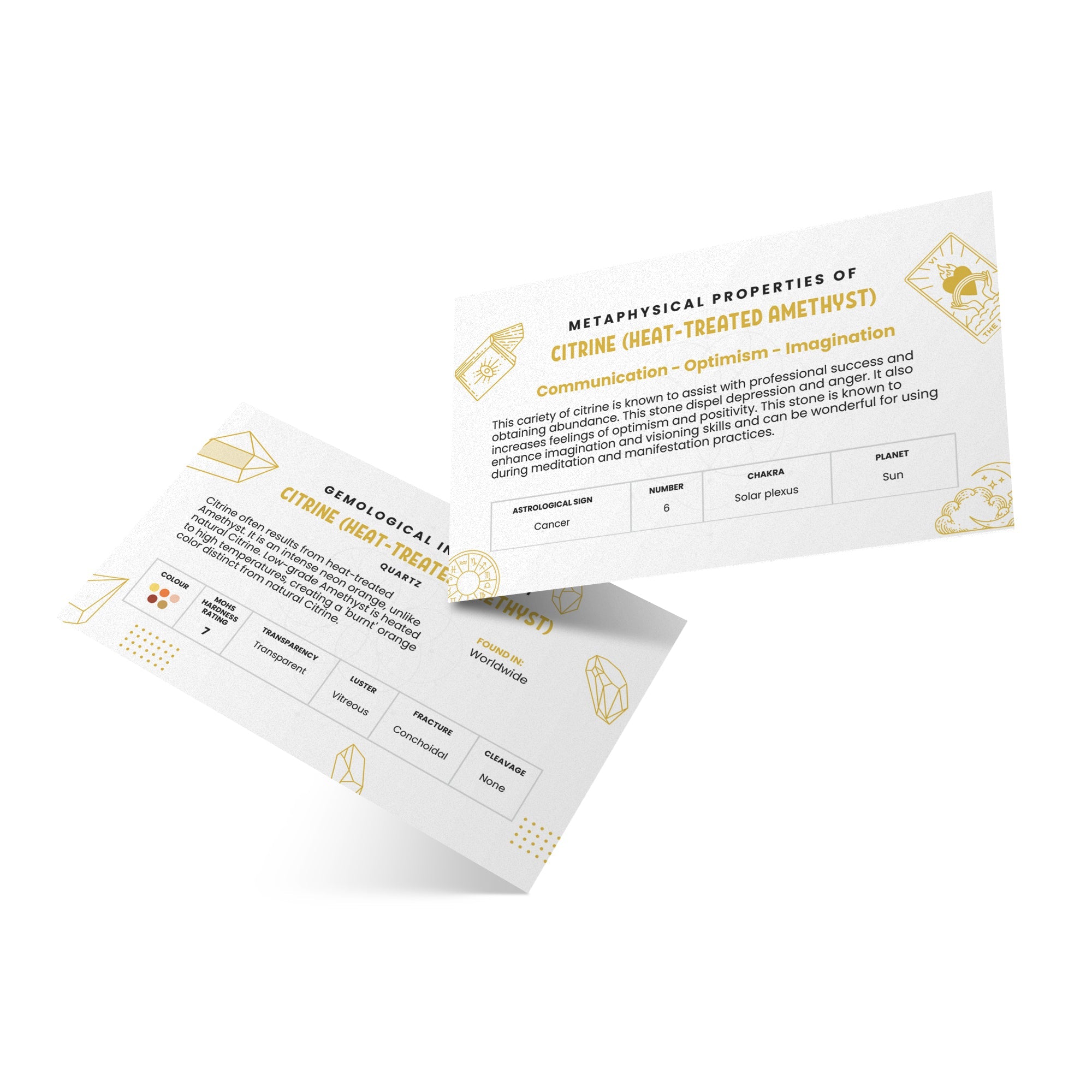 Skip the research with our Stone Meaning Cards - beautifully redesigned and packed with info. This pack contains 10 cards about one stone, including gemological details, metaphysical benefits, astrological ties, and more. Like a "Nutrition Facts" label for crystals, these cards are perfect for collectors, sellers, and spiritual seekers alike. No logos, no sign-ups. Just clear, accessible crystal knowledge at your fingertips.