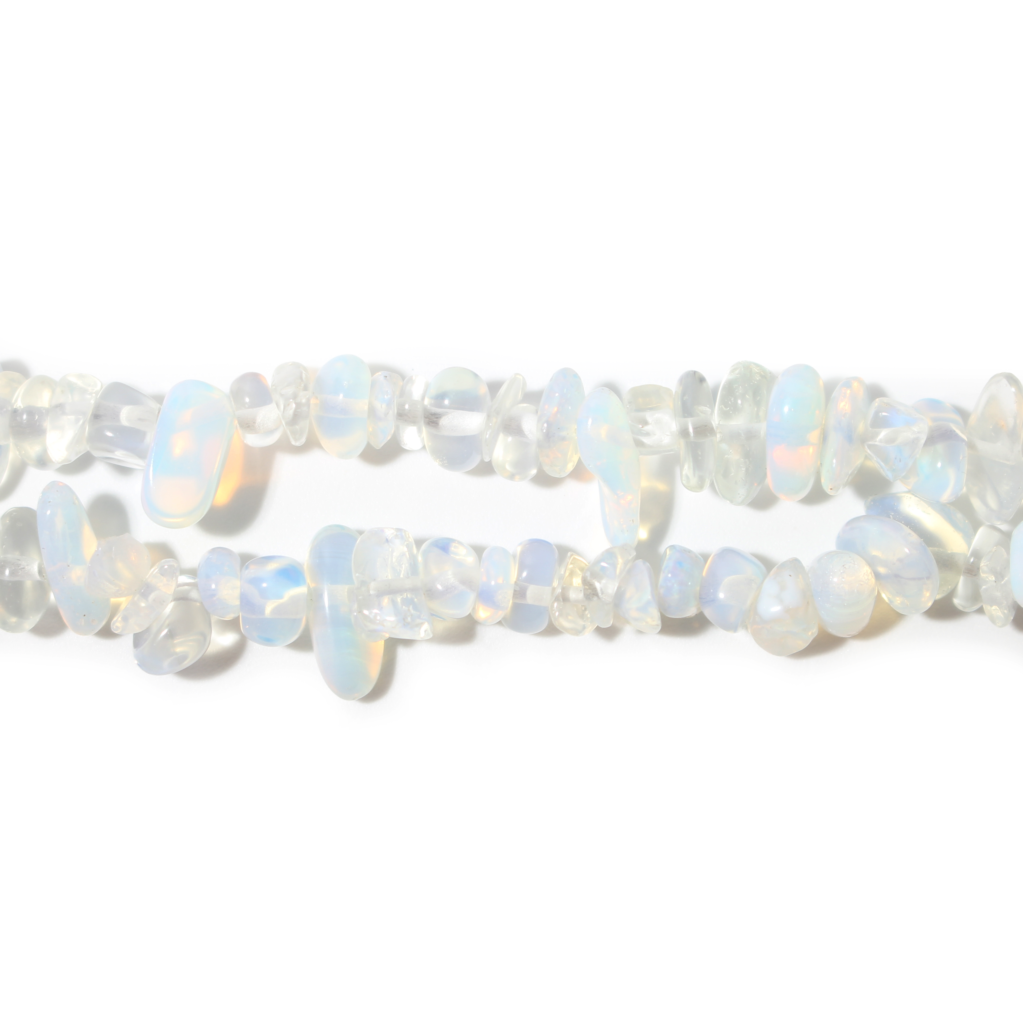 Opalite is associated with the third eye and crown chakras, believed to enhance spiritual awareness, promote inner peace, and assist in transitions. This strand is a luminous and enchanting addition to any jewelry or crystal collection.