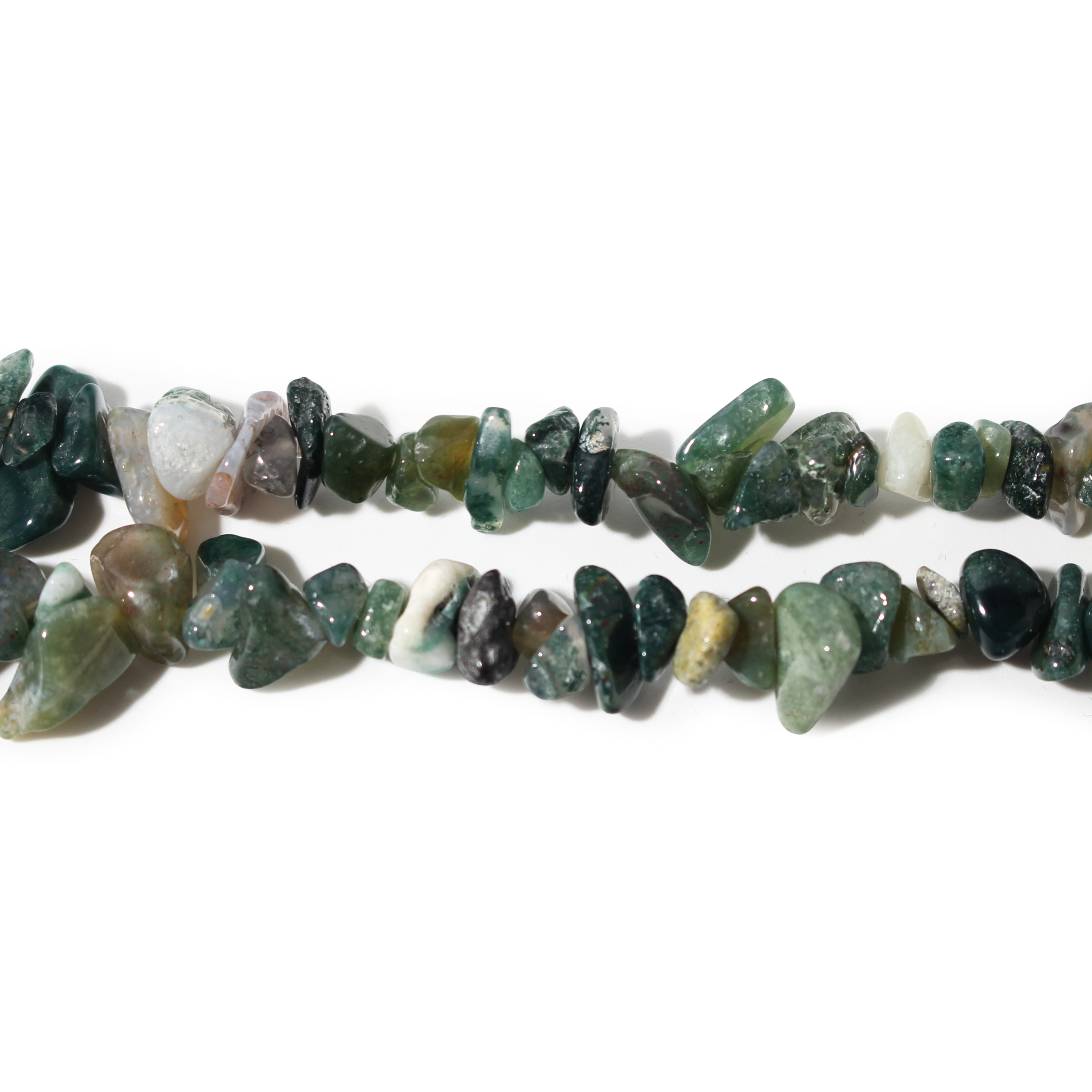 These Moss Agate Strands feature rich green moss-like inclusions flowing through translucent to milky white stone. Each strand offers natural, organic patterns that make every piece unique.