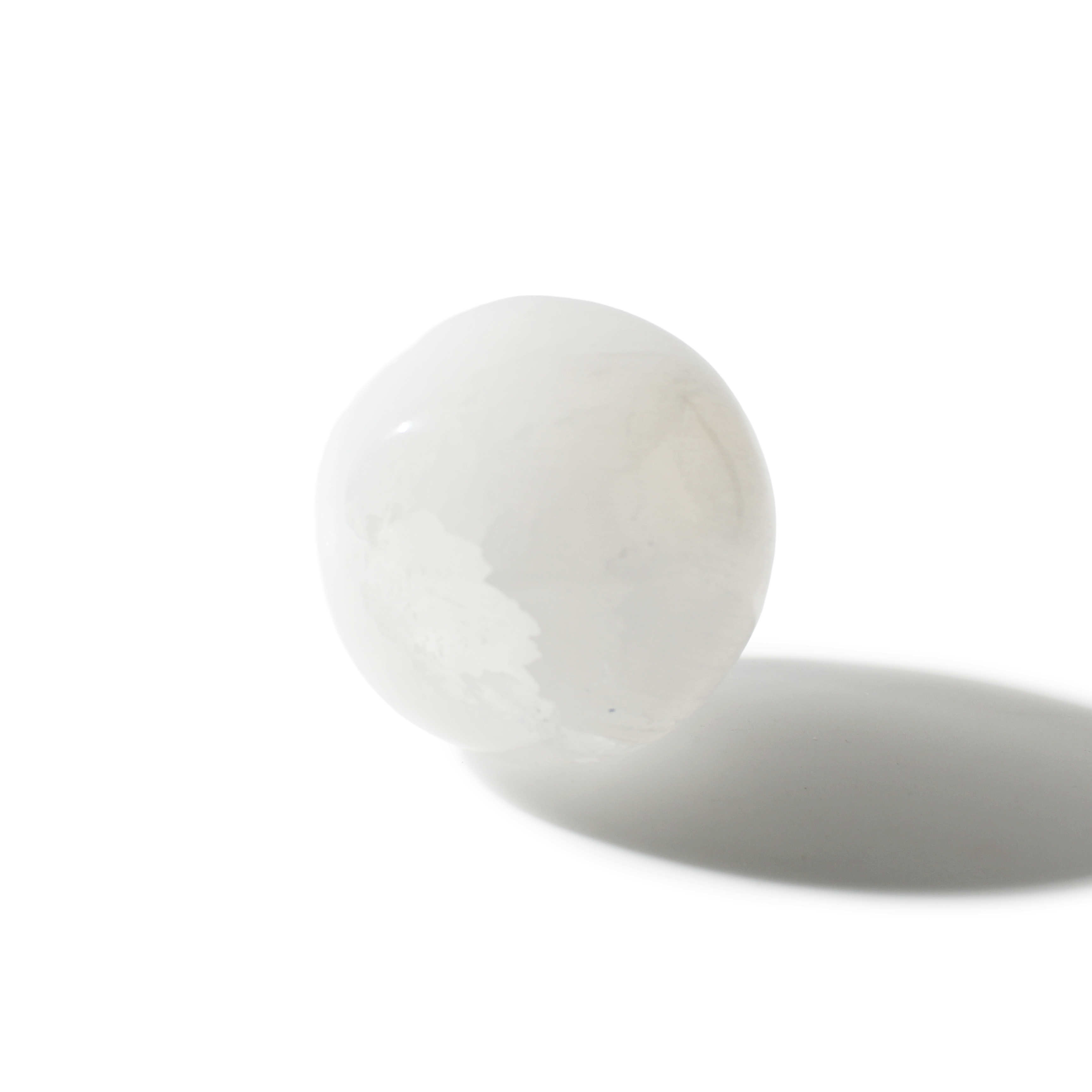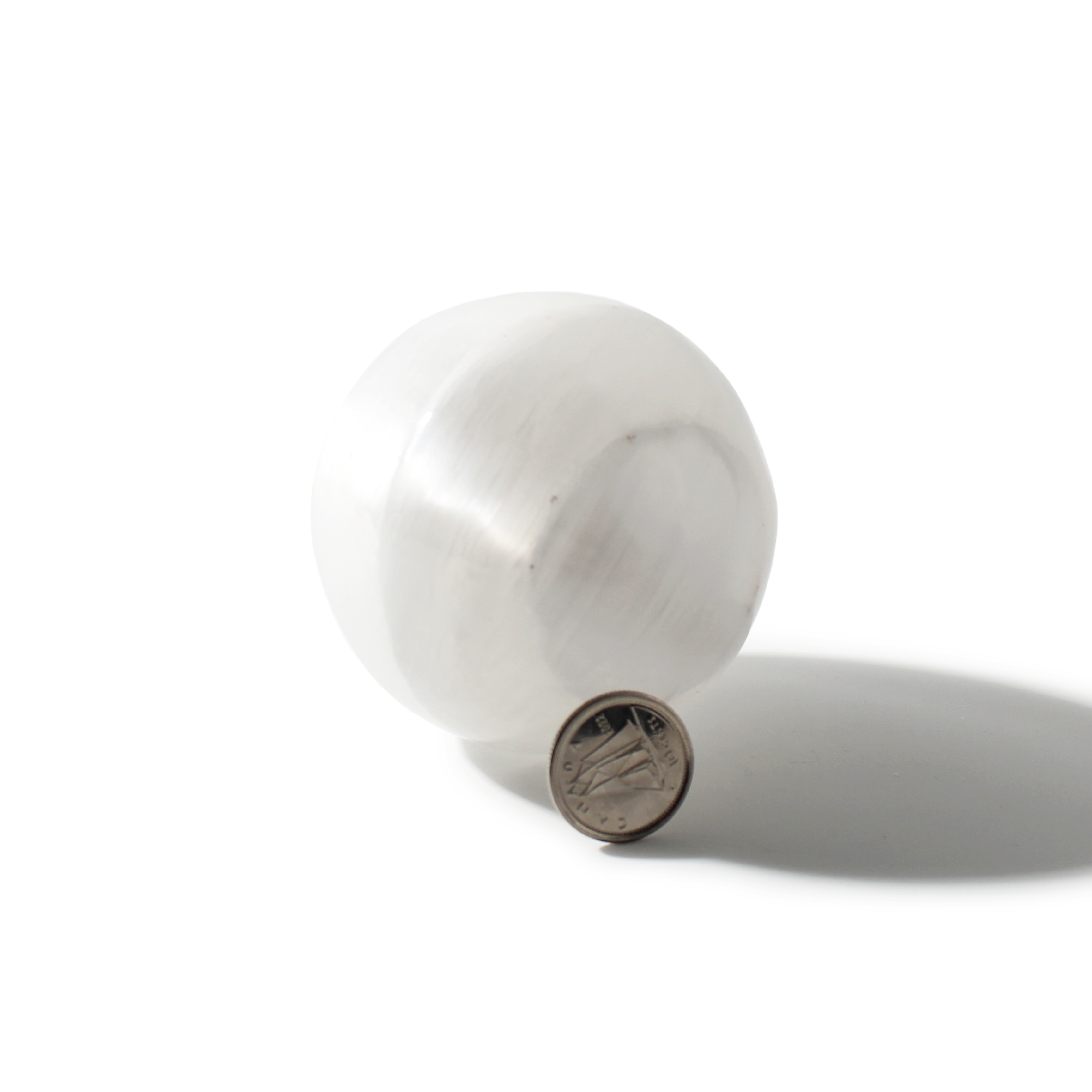 Hand-polished Selenite spheres with a translucent sheen to pearly-white milky tones.