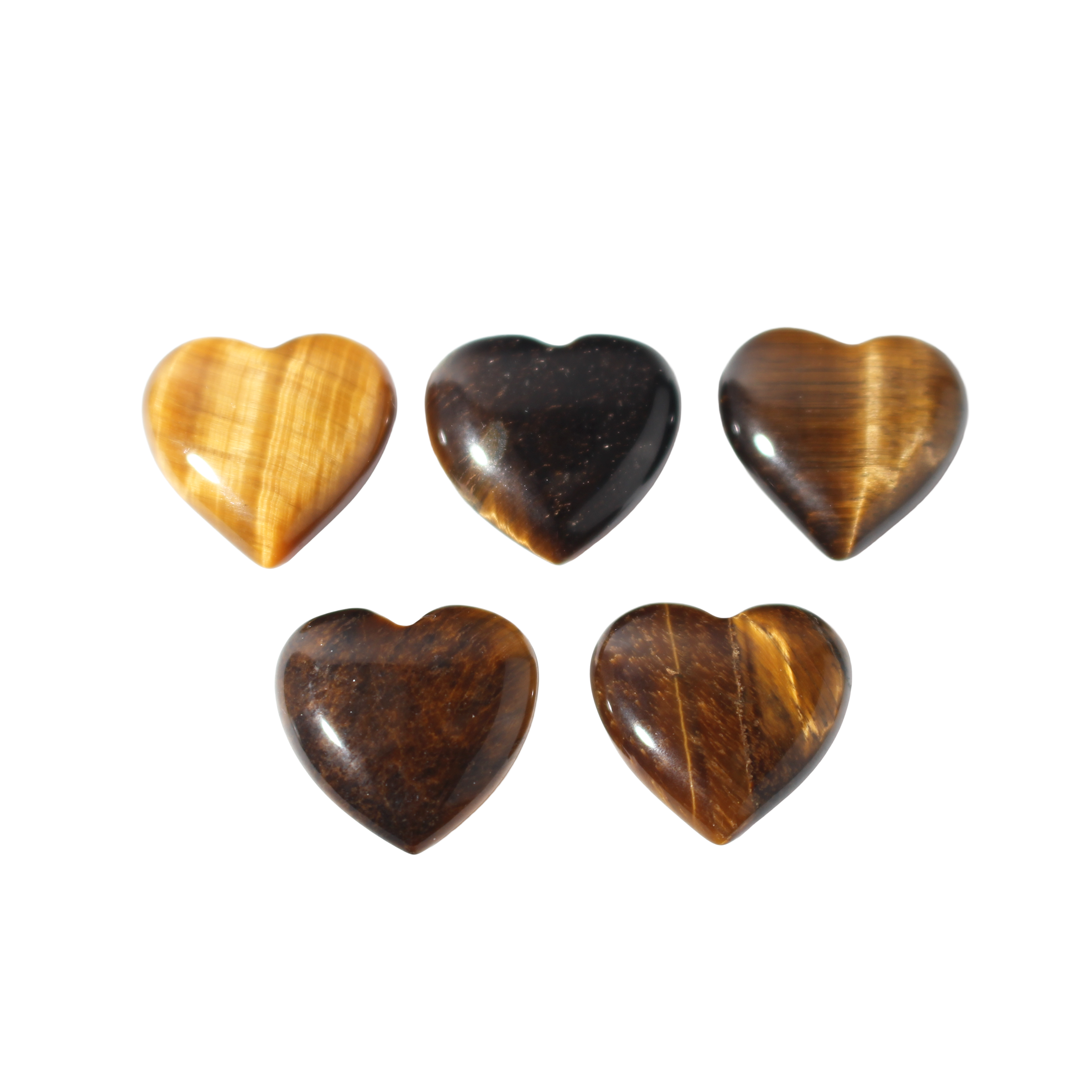 This 5-pack of Tiger Eye Mini Heart Carvings features golden-brown shimmer and a smooth, compact shape, perfect for carrying, gifting, or adding to crystal grids. Each heart reflects strength, focus, and warmth.