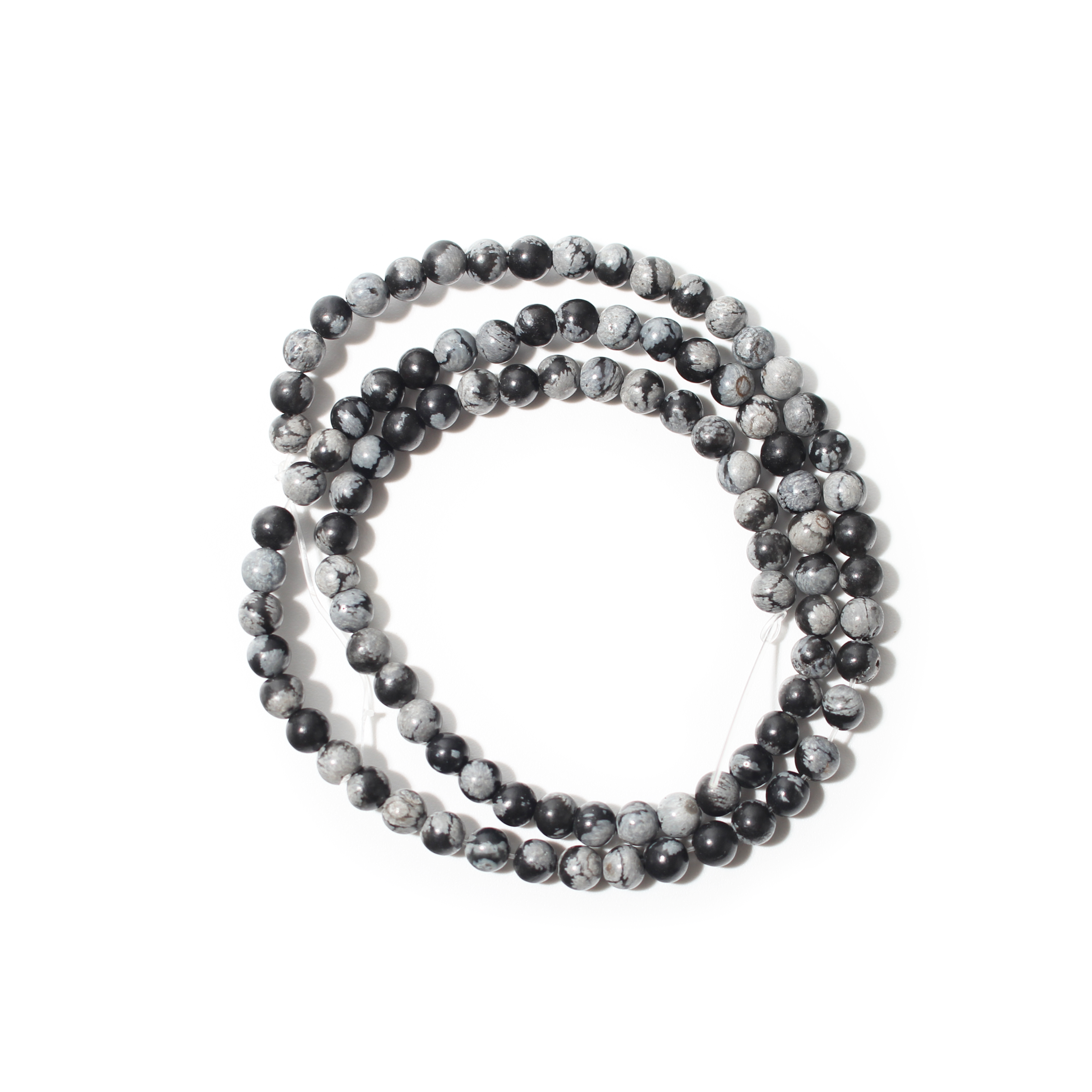 Deep black tones with natural white snowflake-like patterns, perfect for grounding and protective jewelry designs.