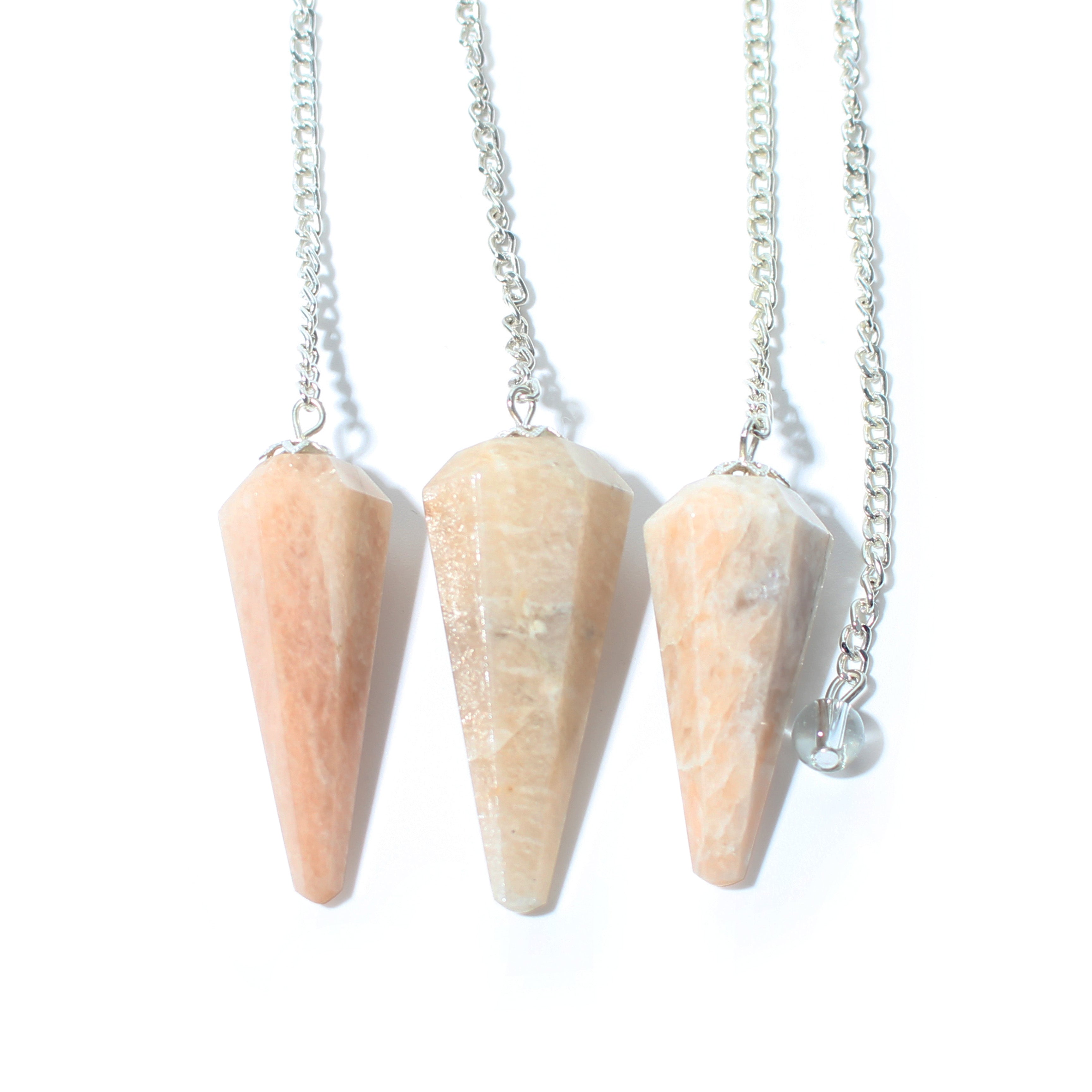 - (01) Cream Moonstone Pendulum 6 Facet & Bead - 3 Pack