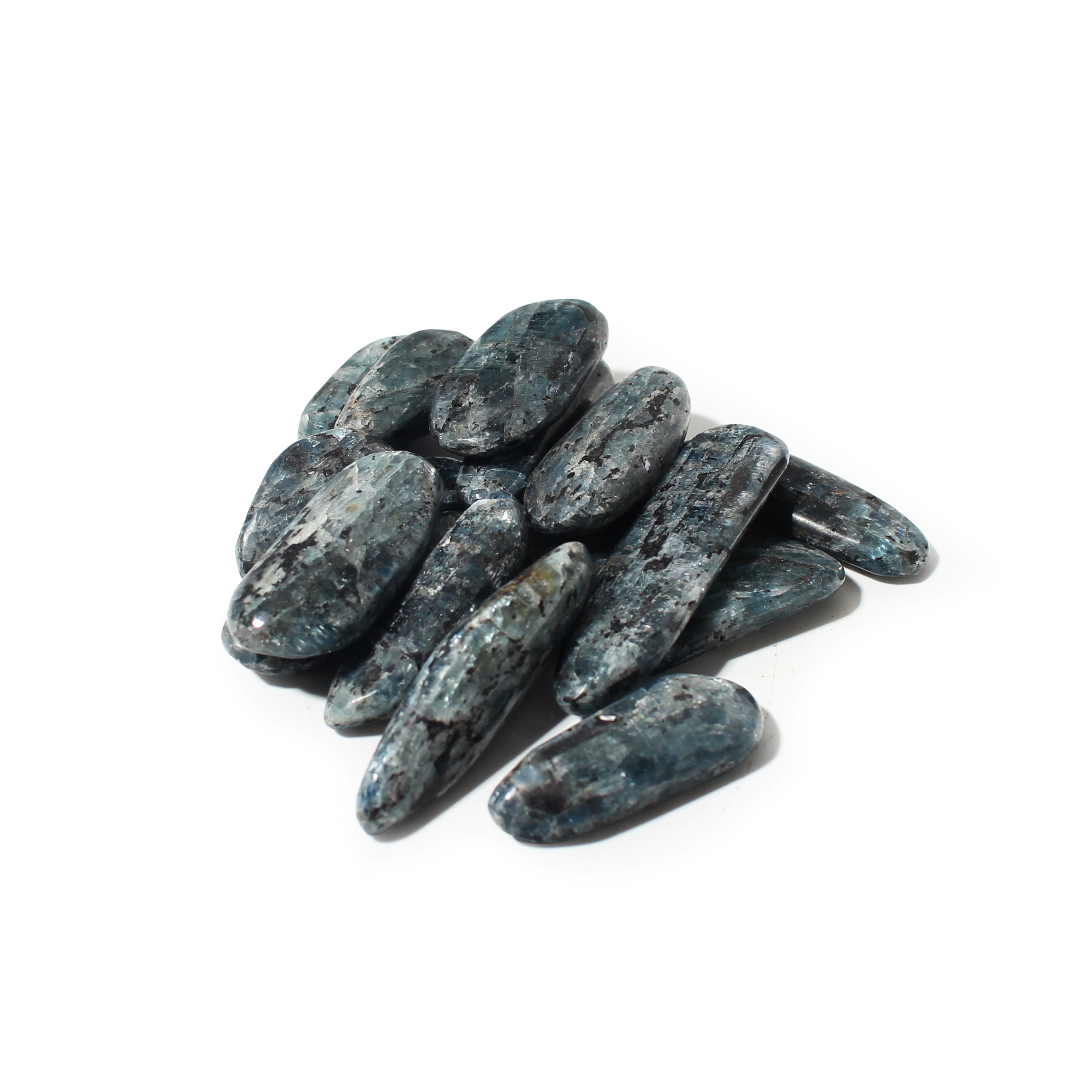These Blue and Green Kyanite Tumbled Stones feature natural blue to teal-green tones with subtle variation, polished smooth for a sleek feel that’s easy to carry or use in meditation.