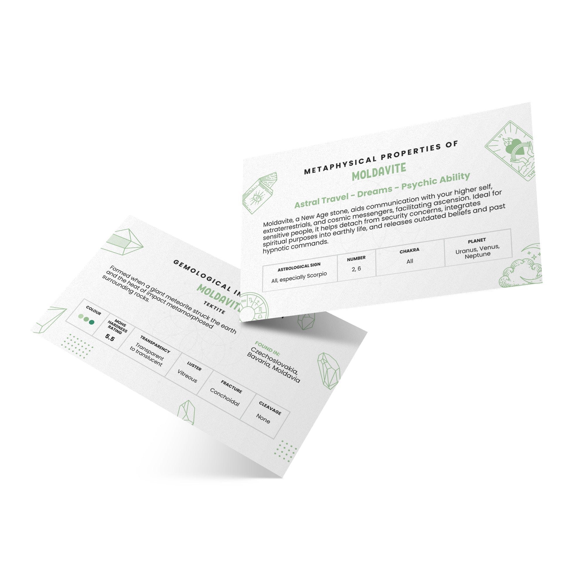 Skip the research with our Stone Meaning Cards - beautifully redesigned and packed with info. This pack contains 10 cards about one stone, including gemological details, metaphysical benefits, astrological ties, and more. Like a "Nutrition Facts" label for crystals, these cards are perfect for collectors, sellers, and spiritual seekers alike. No logos, no sign-ups. Just clear, accessible crystal knowledge at your fingertips.