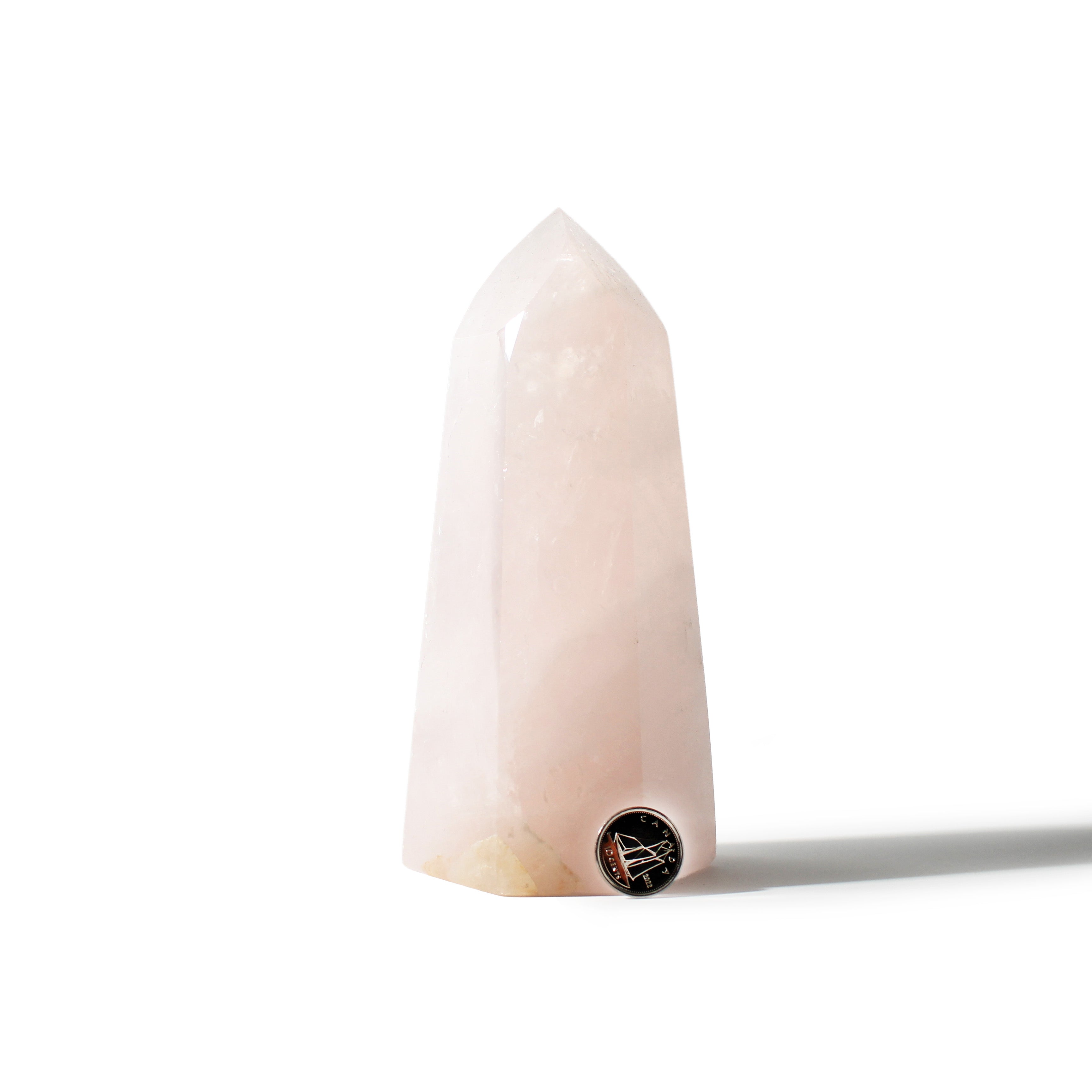 This Rose Quartz Generator stands 6" tall, showcasing soft blush-pink tones with gentle translucency, polished into a smooth, elegant point that radiates calming, heart-centered energy. Each piece highlights Rose Quartz's natural beauty and soothing presence.
