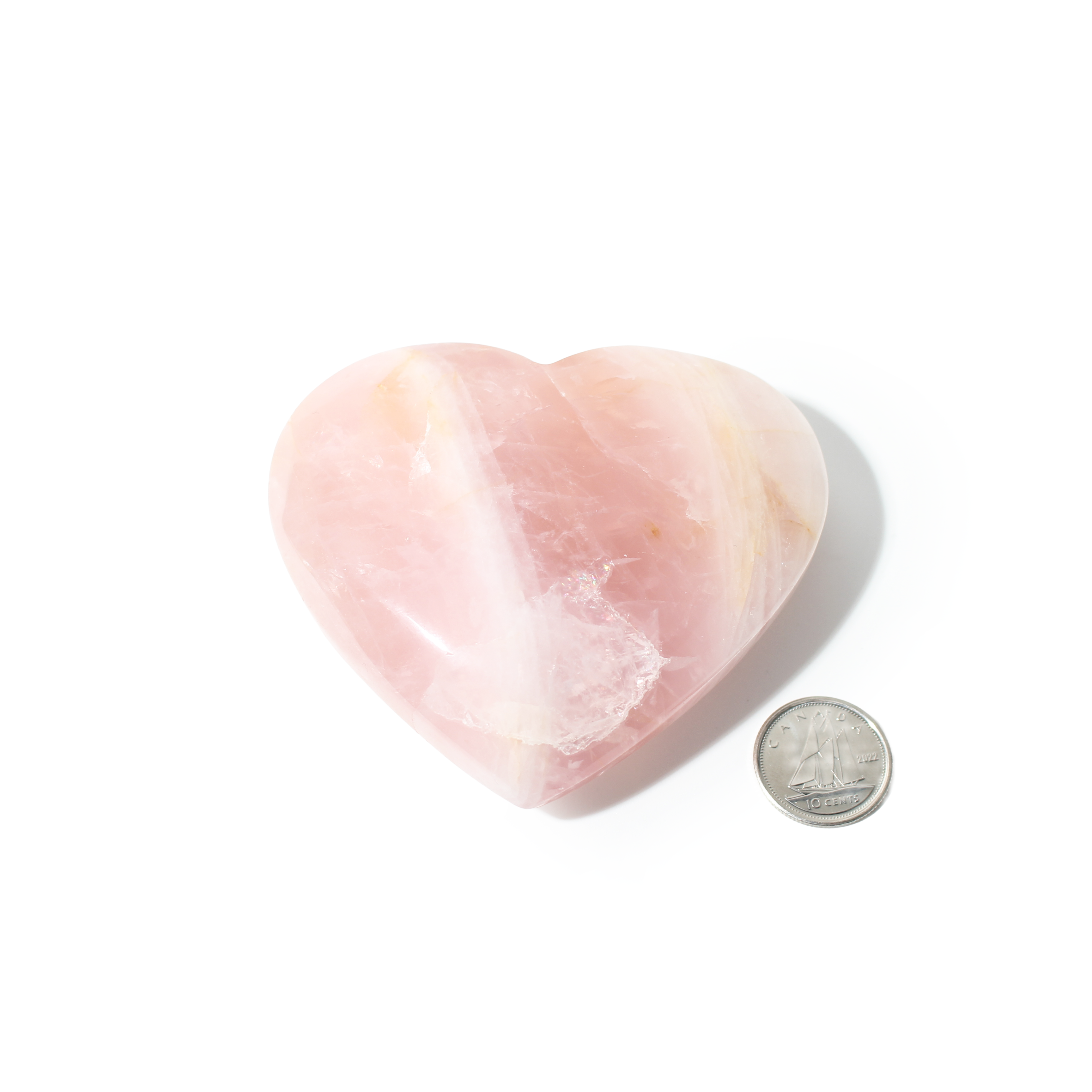 This heart is made from a piece of rose quartz that was polished and carved. Displaying natural colours from a very light, imperceptible pink to rich, translucent pinks, and occasionally sweet reddish-pink hues.