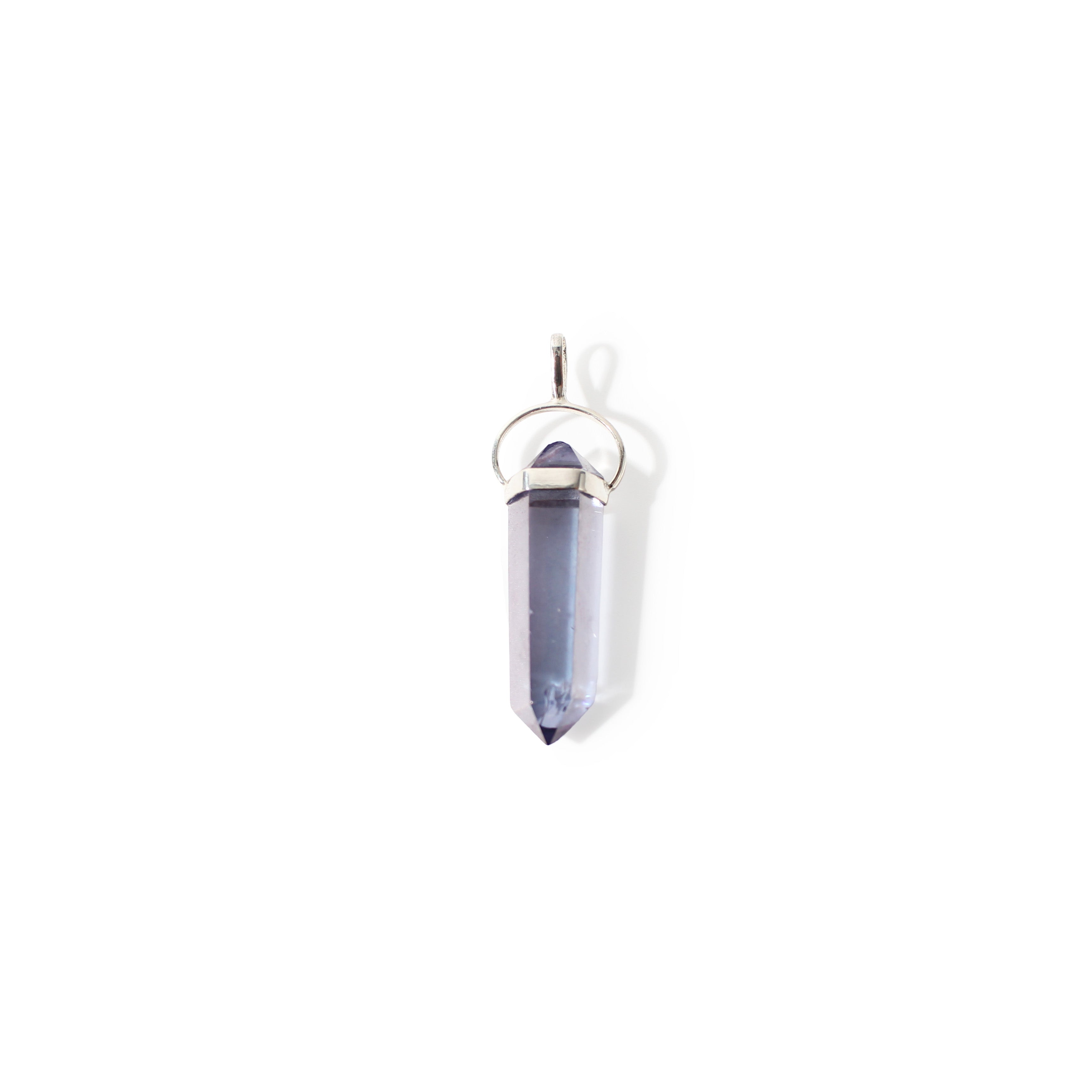 This Lavender Aura Double Terminated Pendant features a dreamy violet sheen with soft iridescence, created by bonding Quartz with precious metals. Its faceted, double-terminated form allows for balanced energy flow and radiant light.
