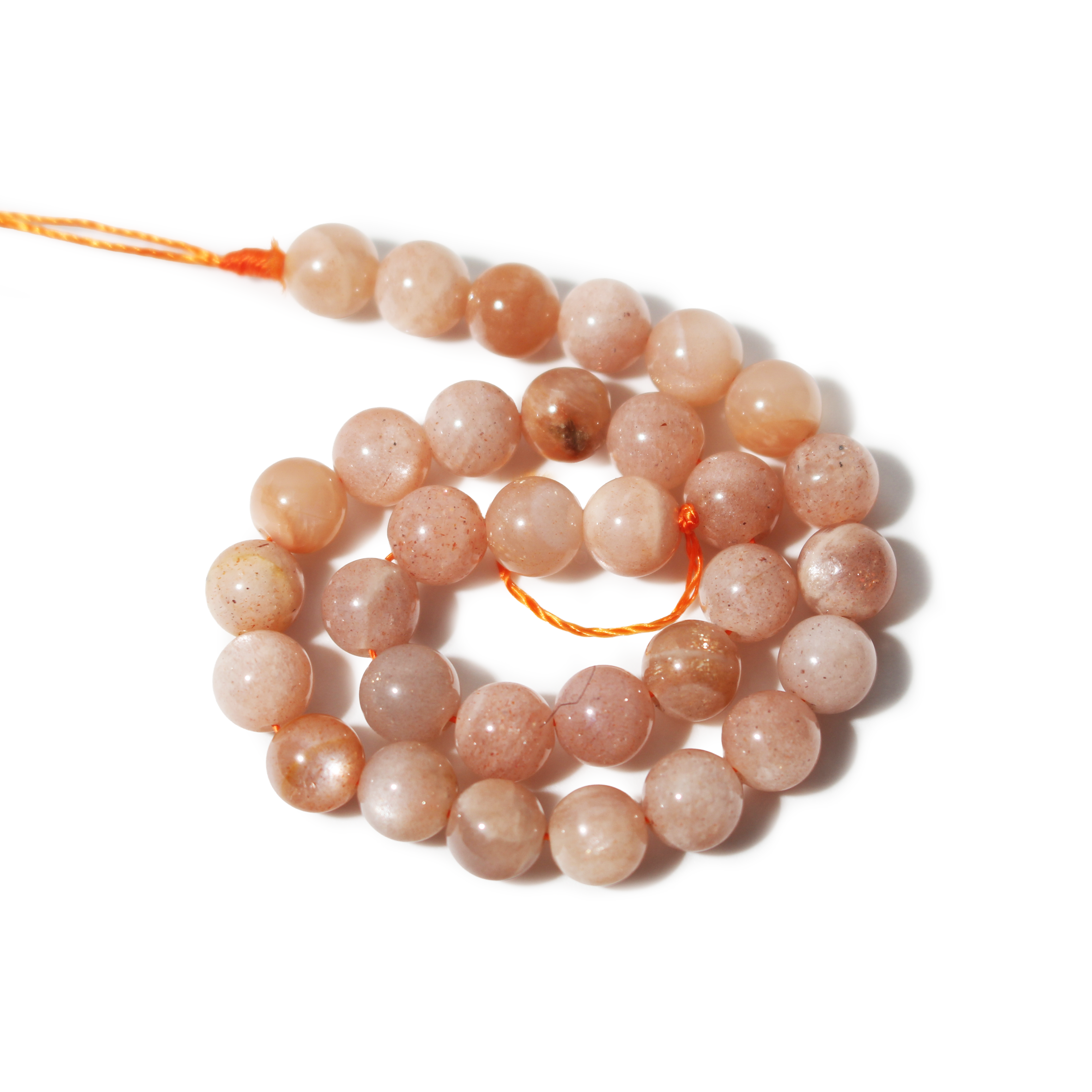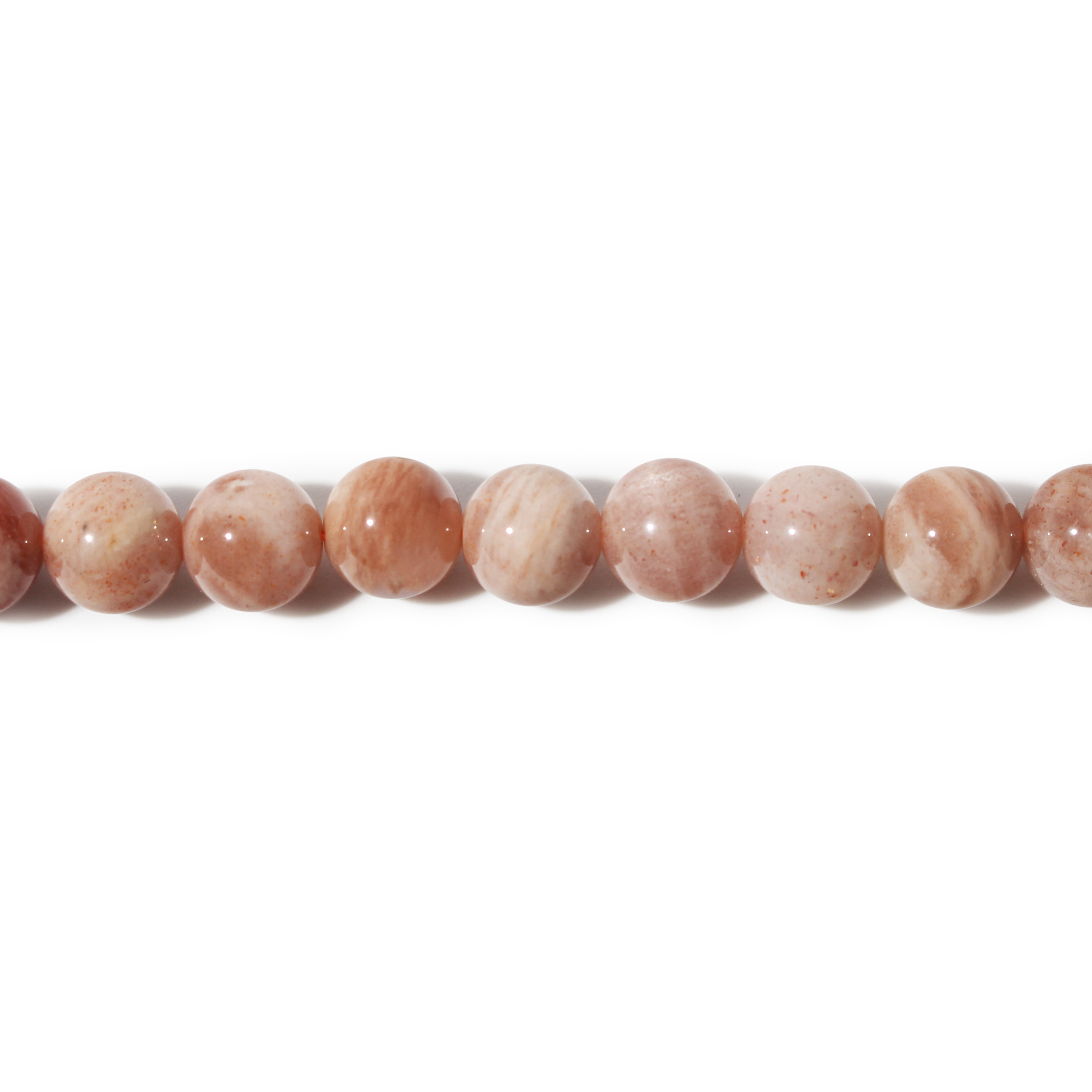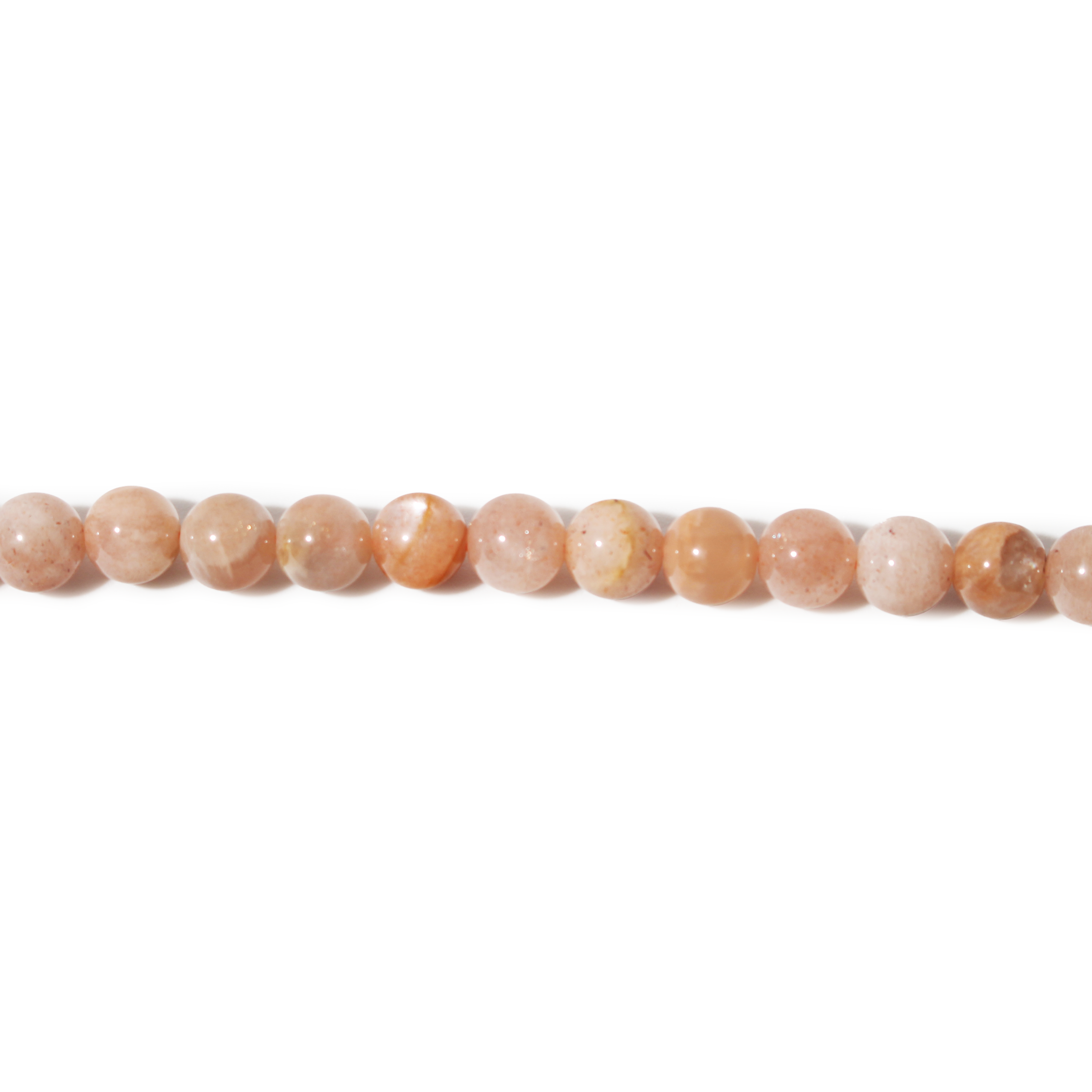 This Sunstone Multi Colour Round Strand showcases a beautiful blend of peach, gold, cream, and subtle grey tones. Each bead shimmers with natural aventurescence, offering a soft sparkle that catches the light.