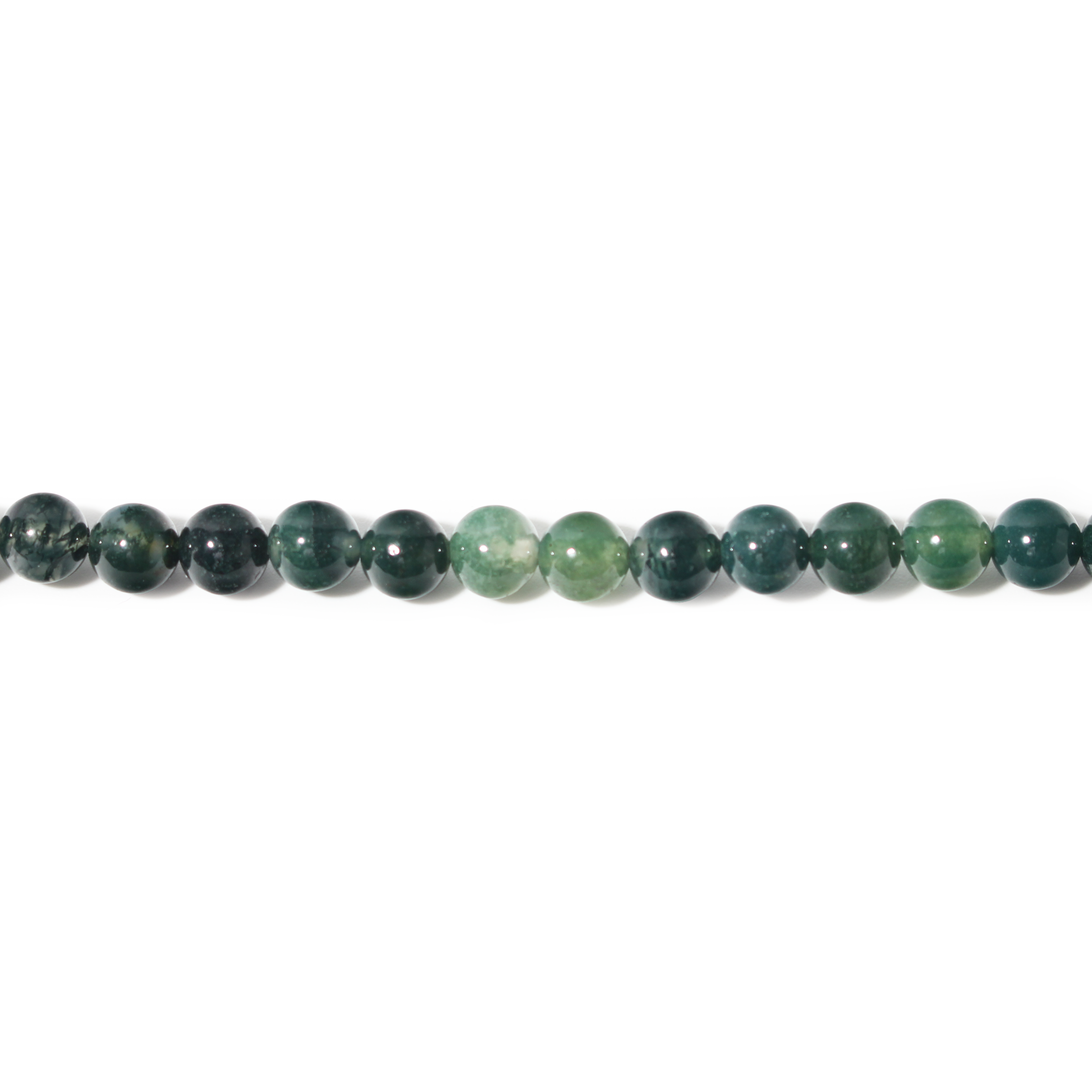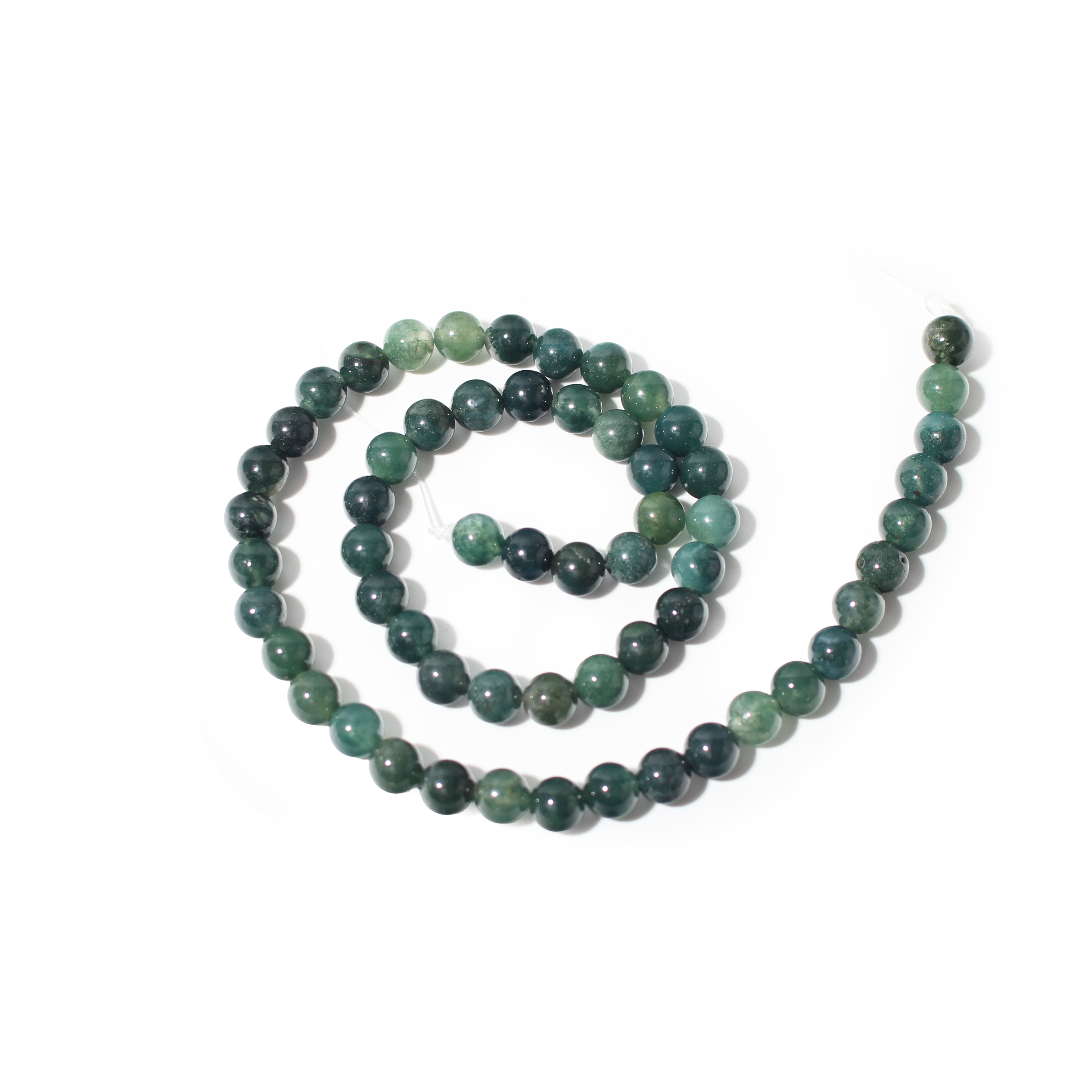 These Moss Agate Strands feature rich green moss-like inclusions flowing through translucent to milky white stone. Each strand offers natural, organic patterns that make every piece unique.