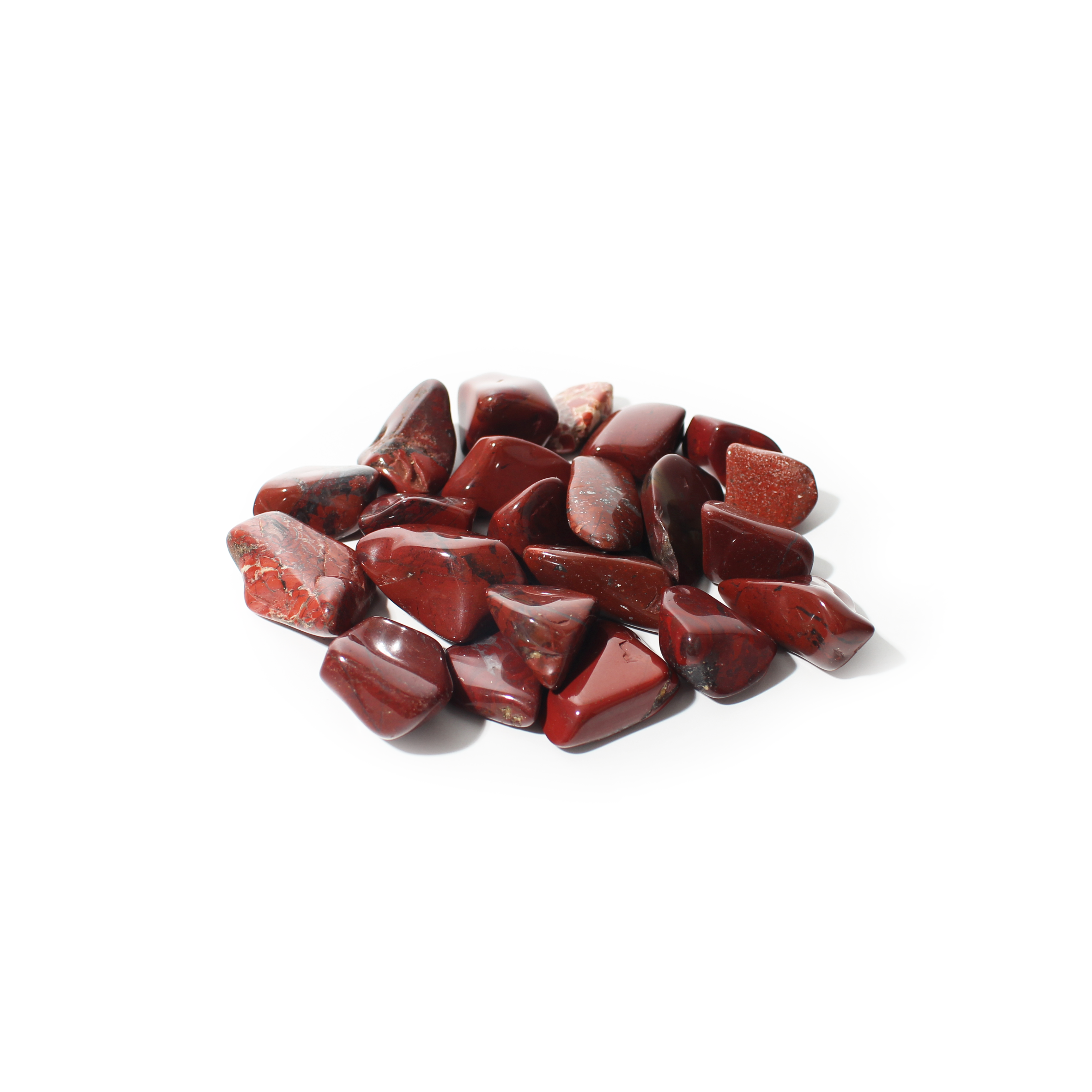 These Brecciated Jasper Tumbled Stones display a striking mix of deep reds, browns, and earthy tones with natural veining, polished to a smooth finish ideal for carrying, meditation, or display.