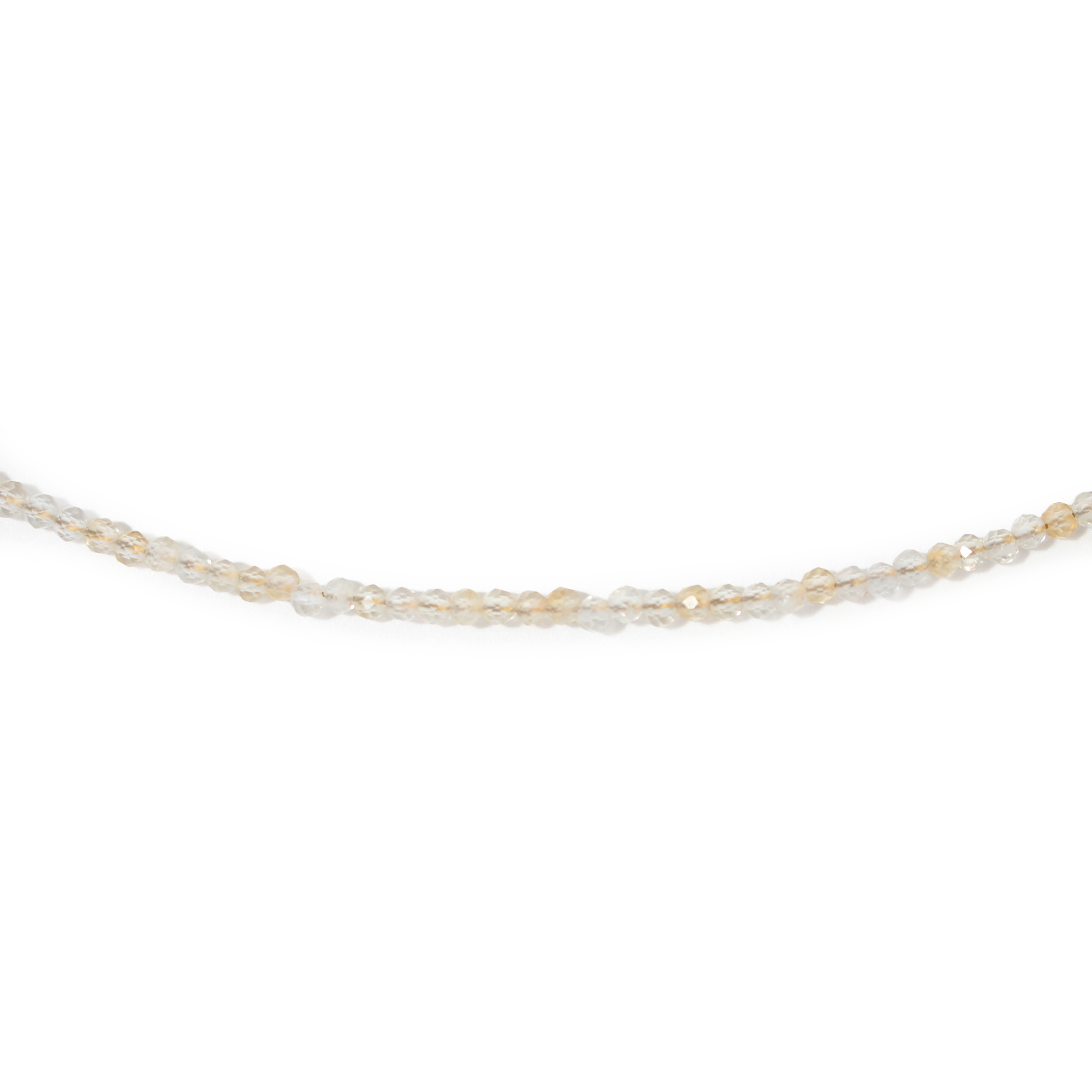 This Citrine Bead Necklace features dainty 2–3mm beads in warm golden hues, bringing a bright, cheerful accent that’s perfect for layering or daily wear.