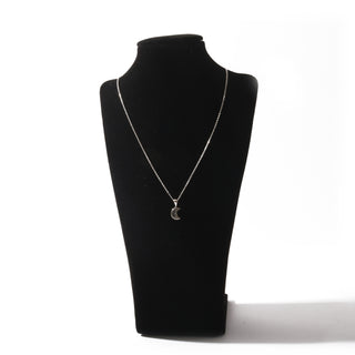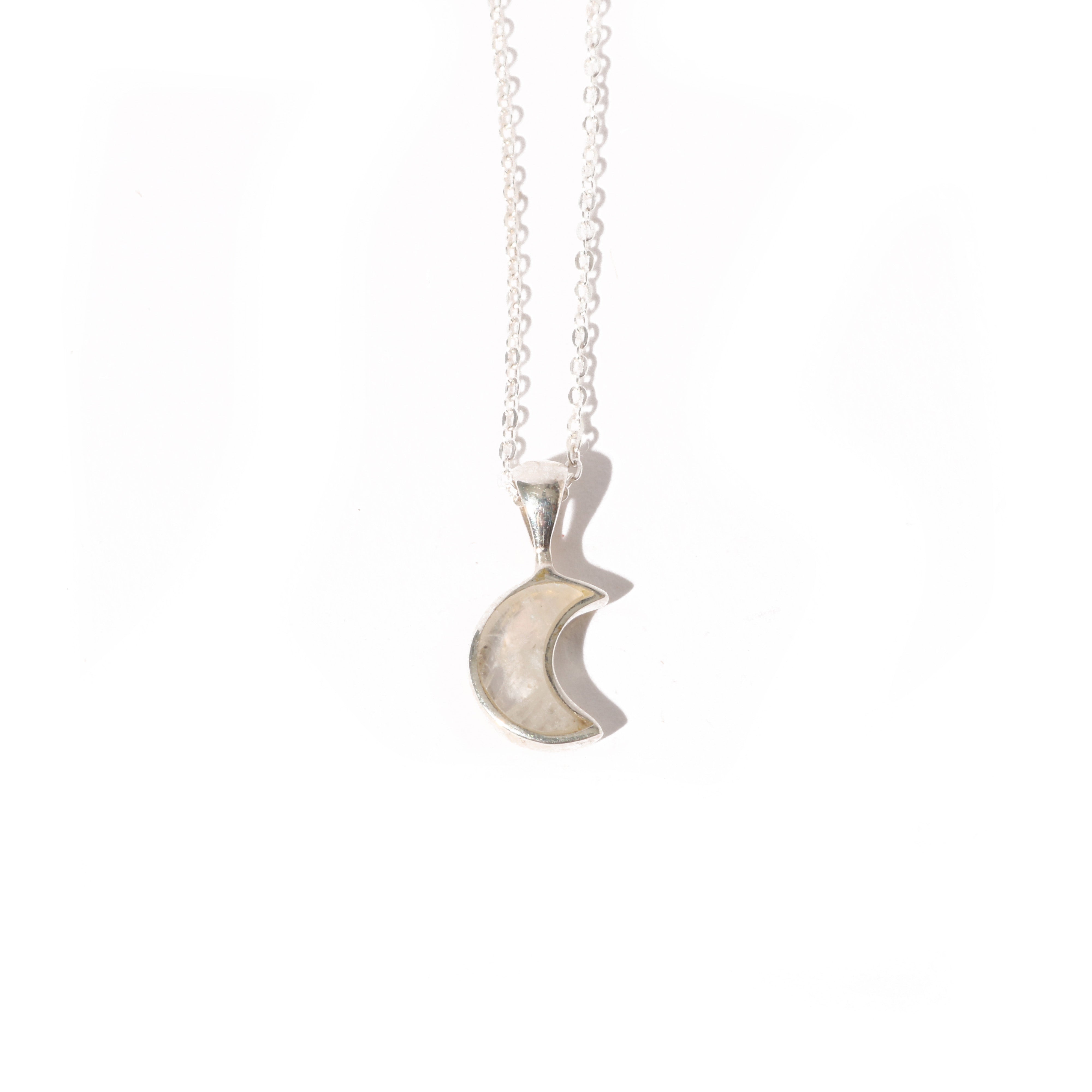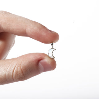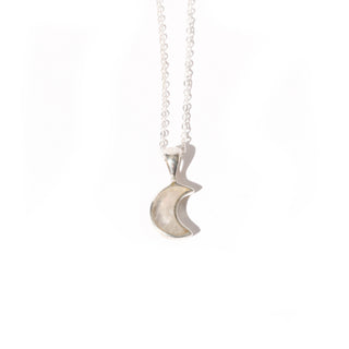 Rainbow Moonstone is often connected to the crown chakra, which stimulates spiritual insight and heightens psychic abilities. With its moon shape and accompanying chain, this pendant beautifully showcases the moonstone's captivating adularescence, making each piece a unique, stylish accessory that embodies the magic of the moon.