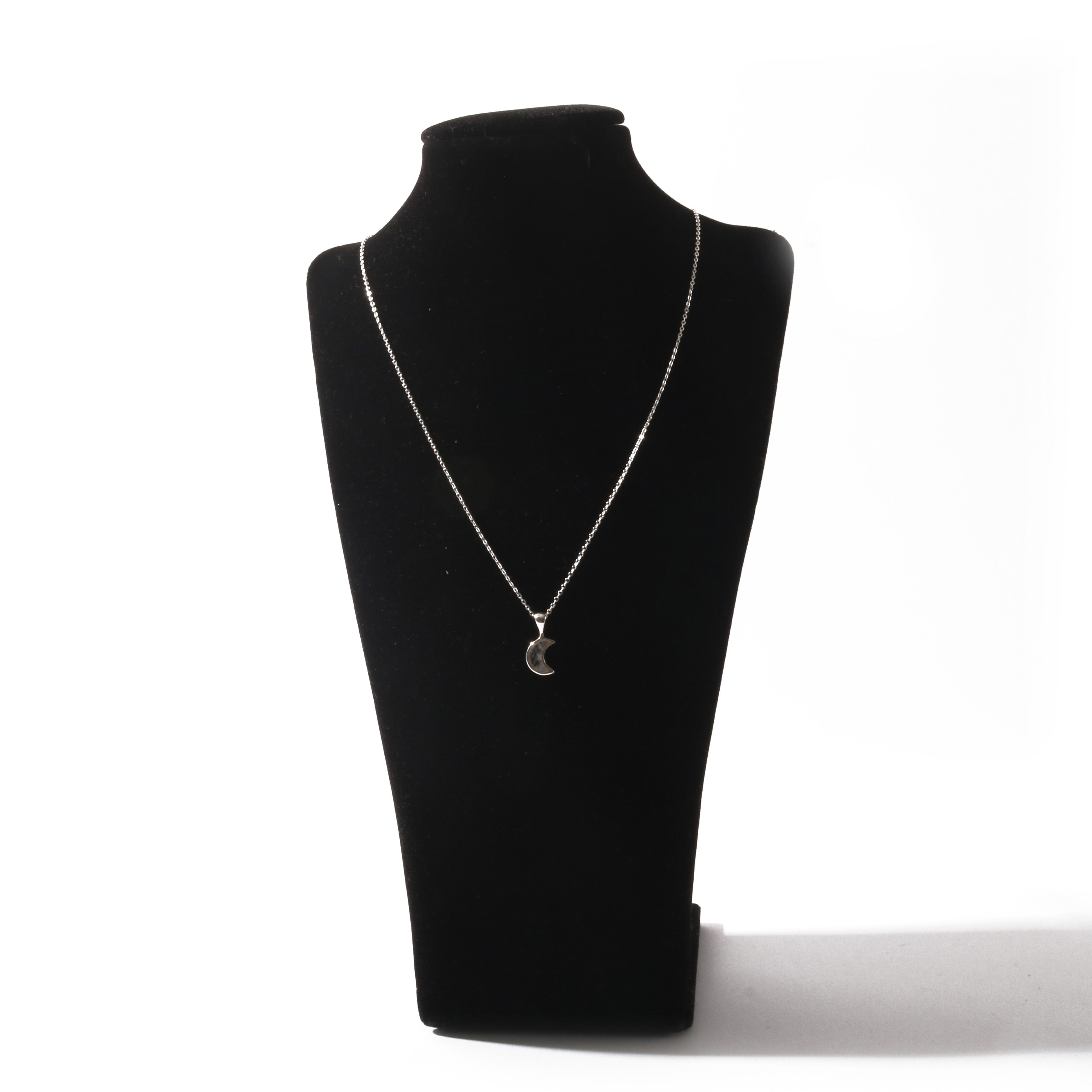 Illuminate your look with the celestial allure of our Rainbow Moonstone Moon Pendant with Chain, an enchanting piece that perfectly mirrors the mystical charm of a moonlit night.
