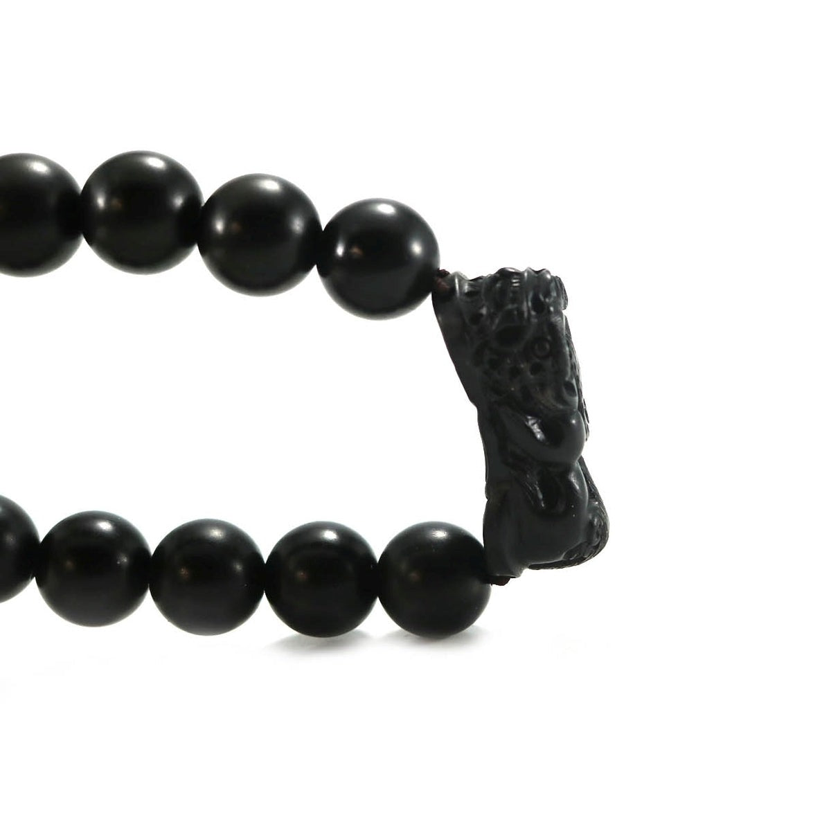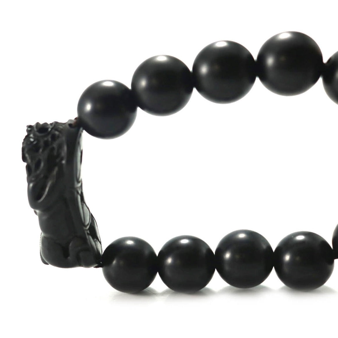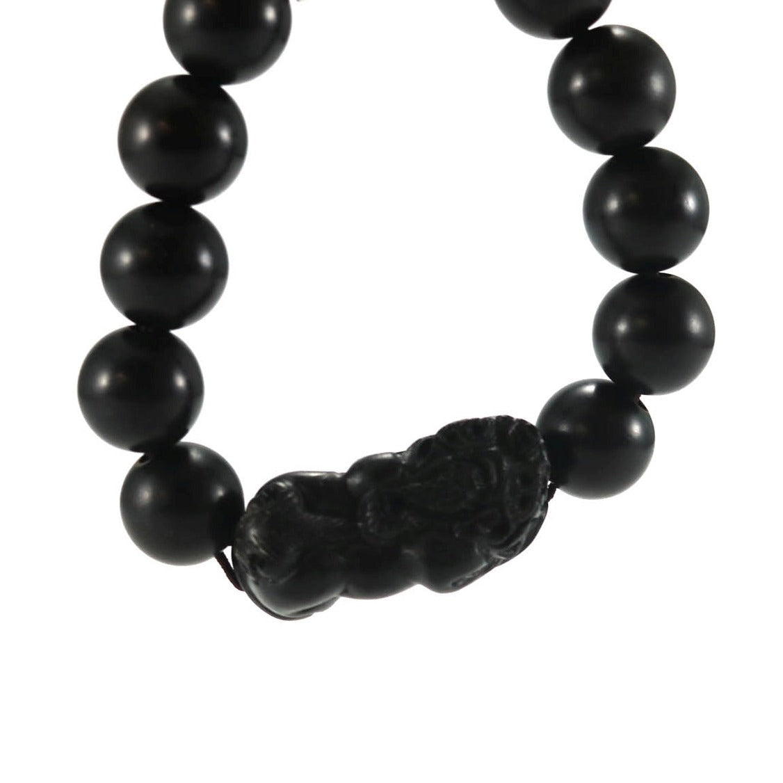 These mala bracelets were carefully crafted in China with beautiful round wooden beads.They are strung in a stretchy cord and finished with a decorative Pixiu charm.