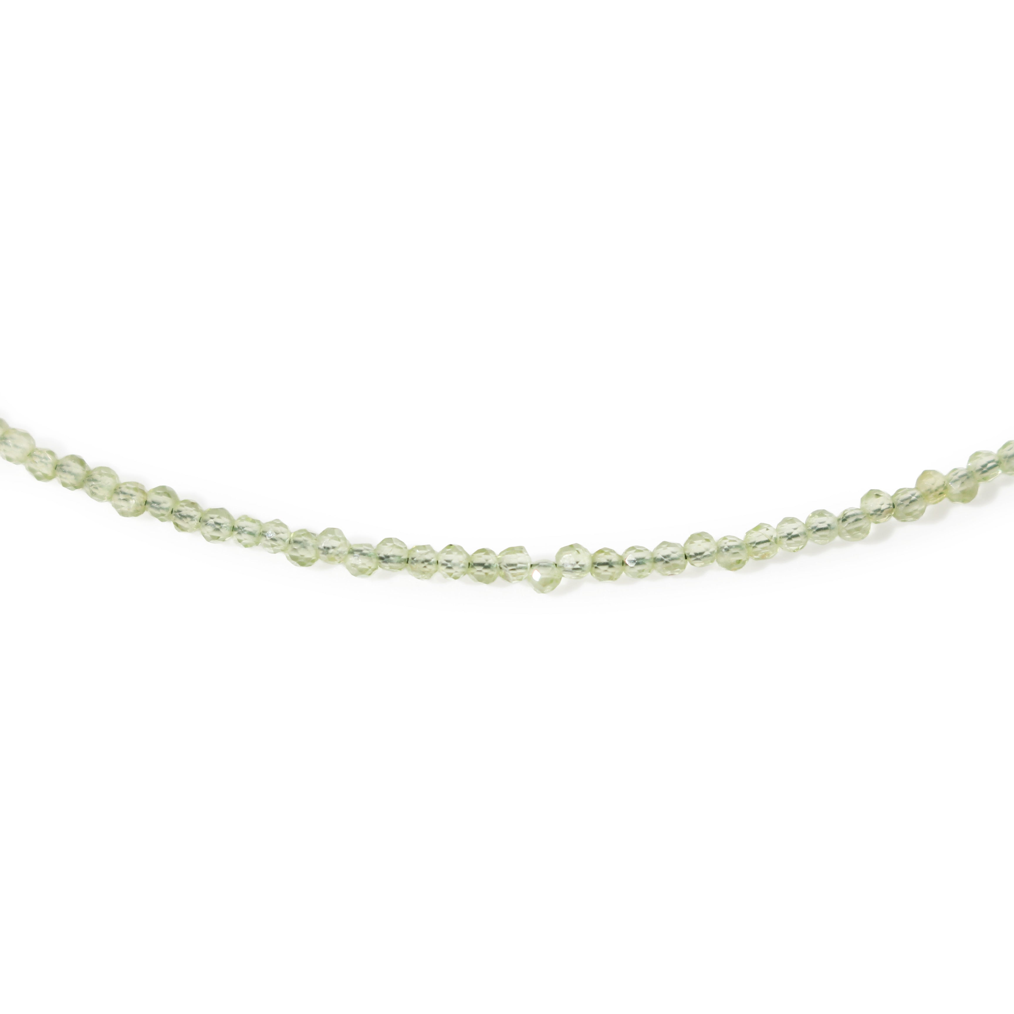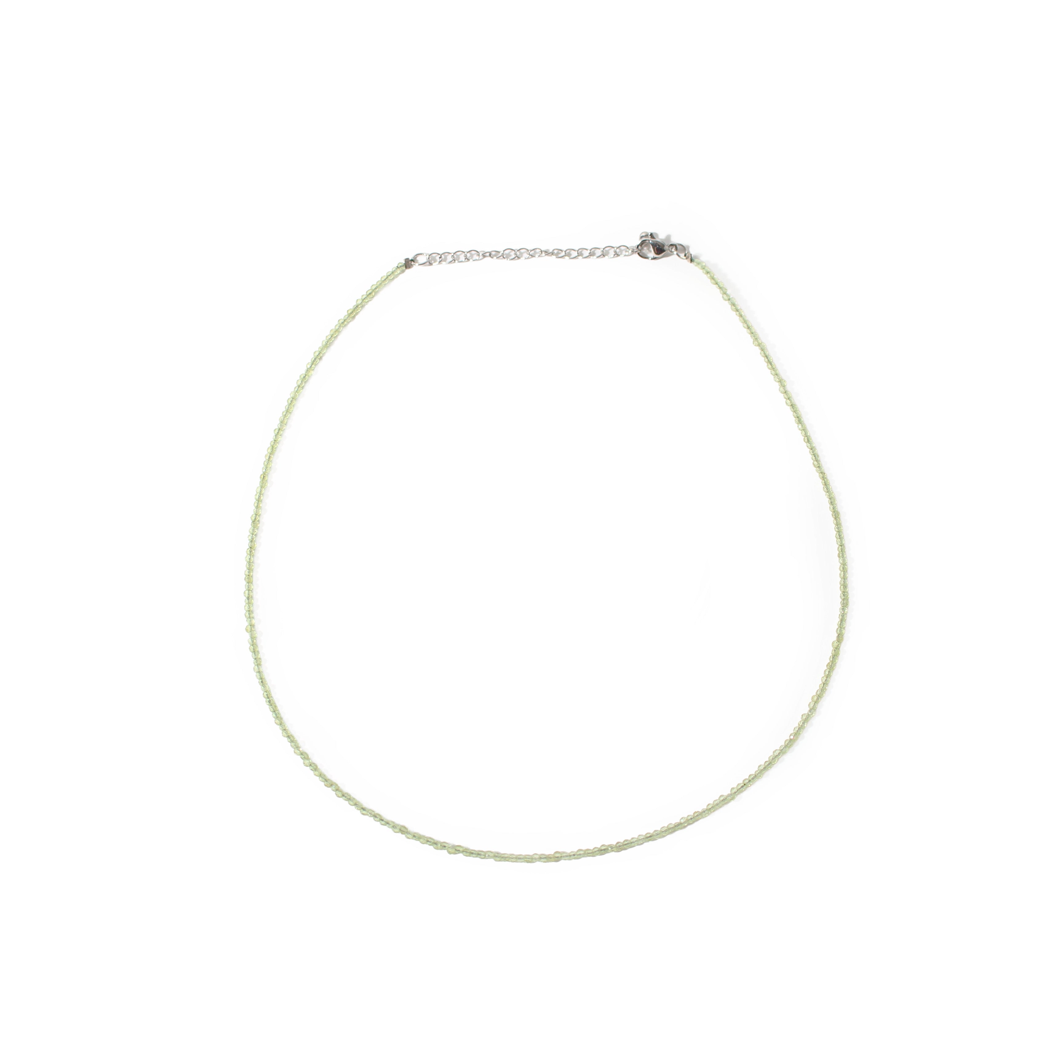 This Peridot Bead Necklace features fresh, vibrant 2–3mm beads in a zesty green hue. Light-catching and energizing, it brings a bright, joyful vibe to your everyday look.