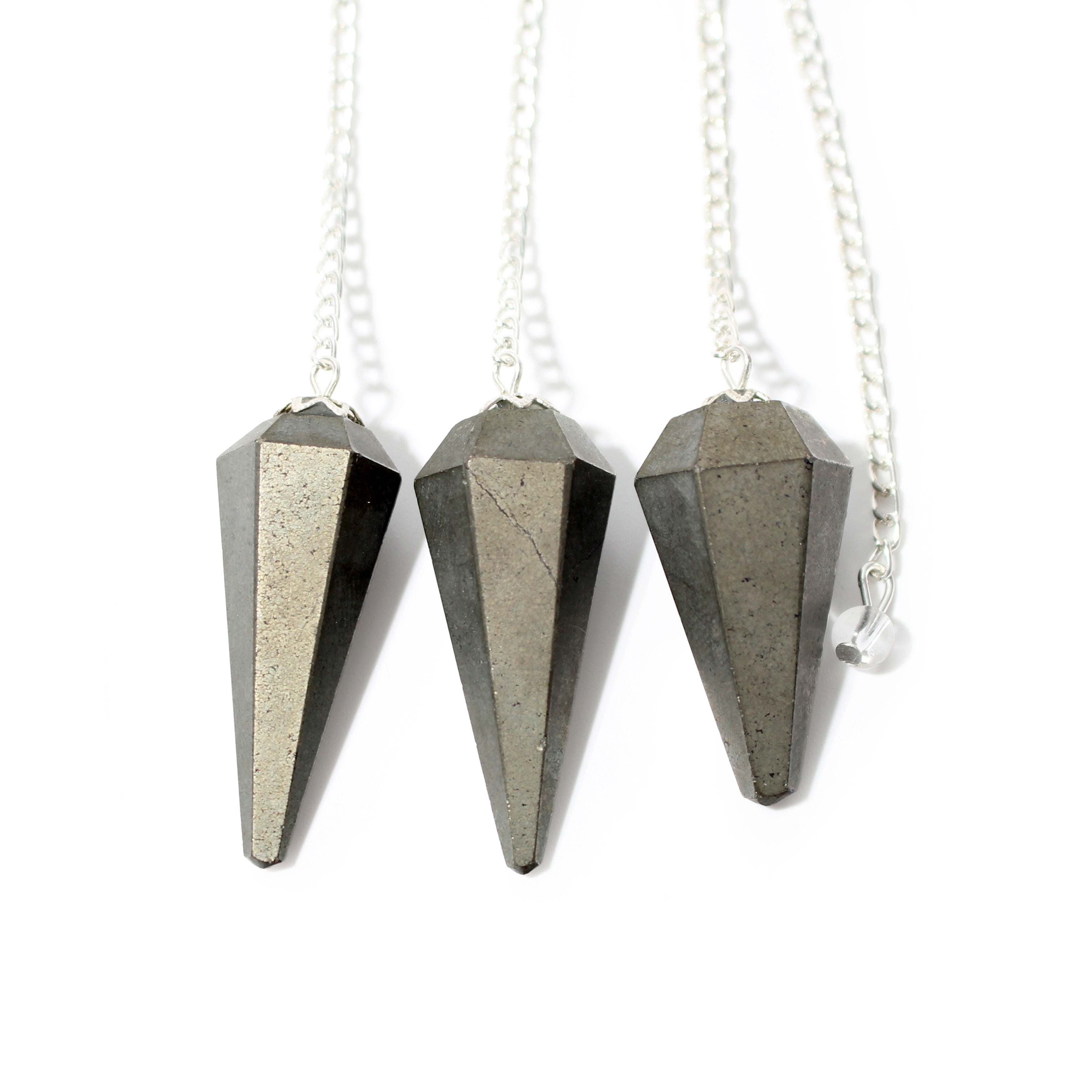 Our Pyrite pendulums are hand-selected for their metallic gold tones, symbolizing abundance, protection, and confidence. The six-facet design allows for focused energy flow, making this pendulum ideal for divination, dowsing, and manifesting success.