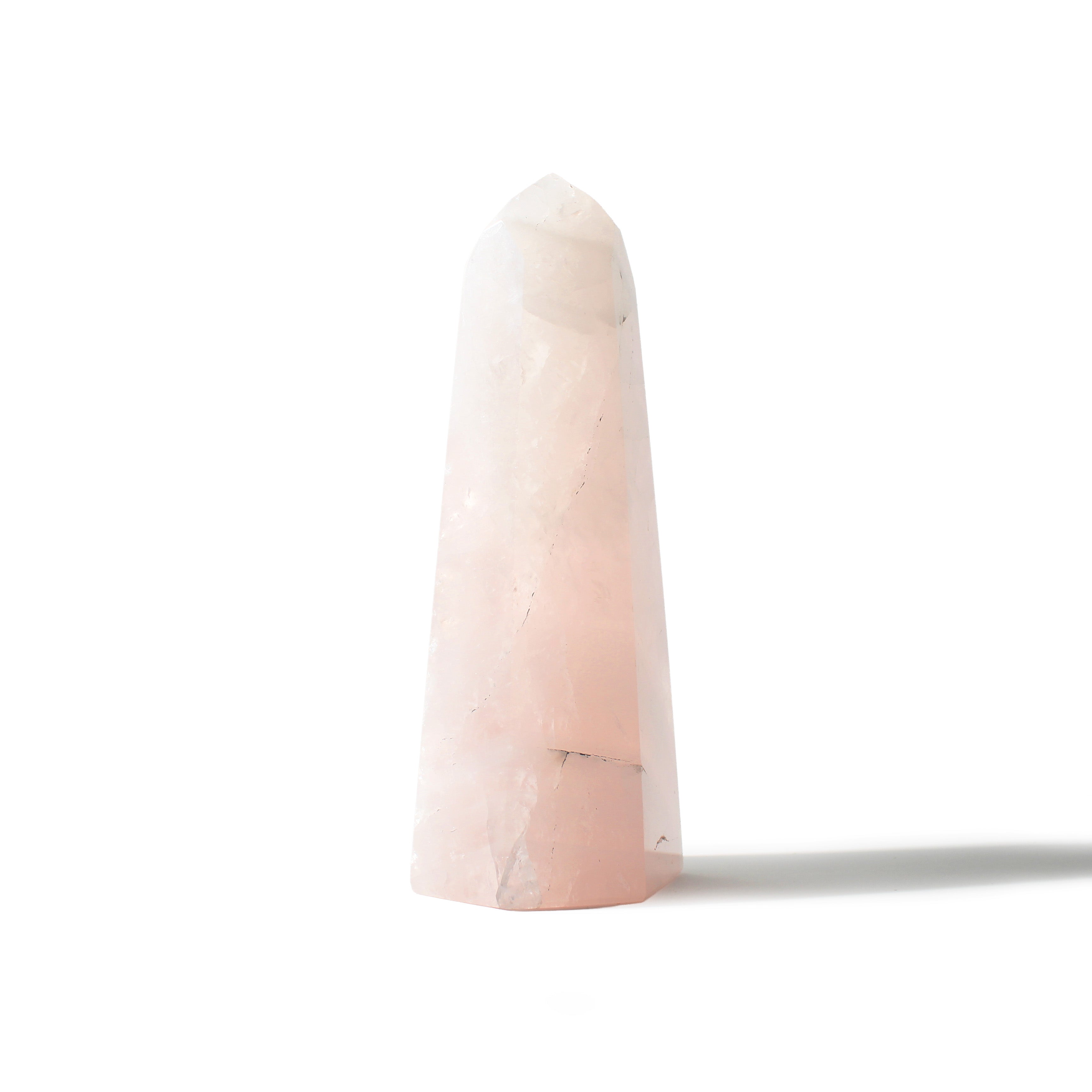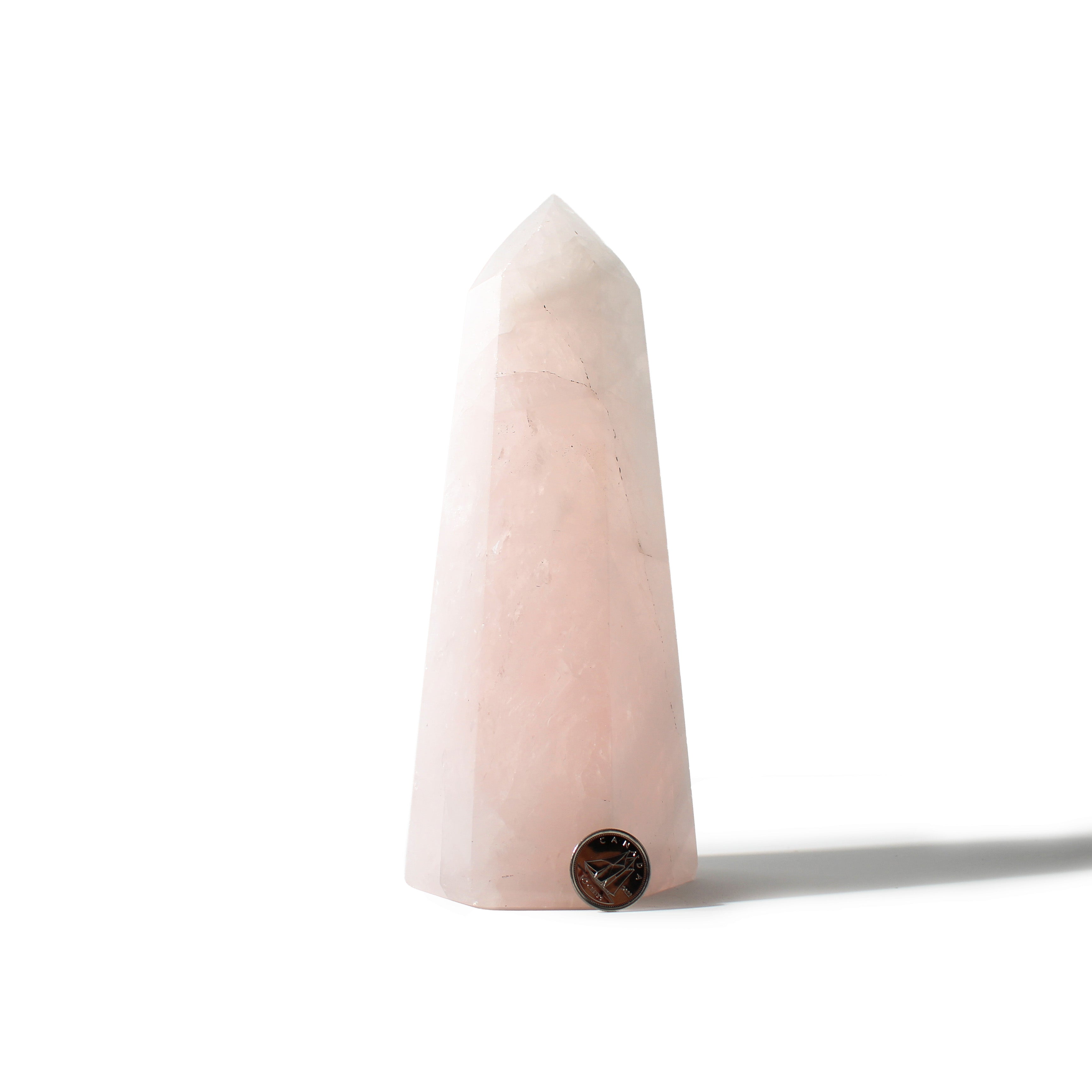 This Rose Quartz Generator stands 7" tall, showcasing soft blush-pink tones with gentle translucency, polished into a smooth, elegant point that radiates calming, heart-centered energy. Each piece highlights Rose Quartz's natural beauty and soothing presence.