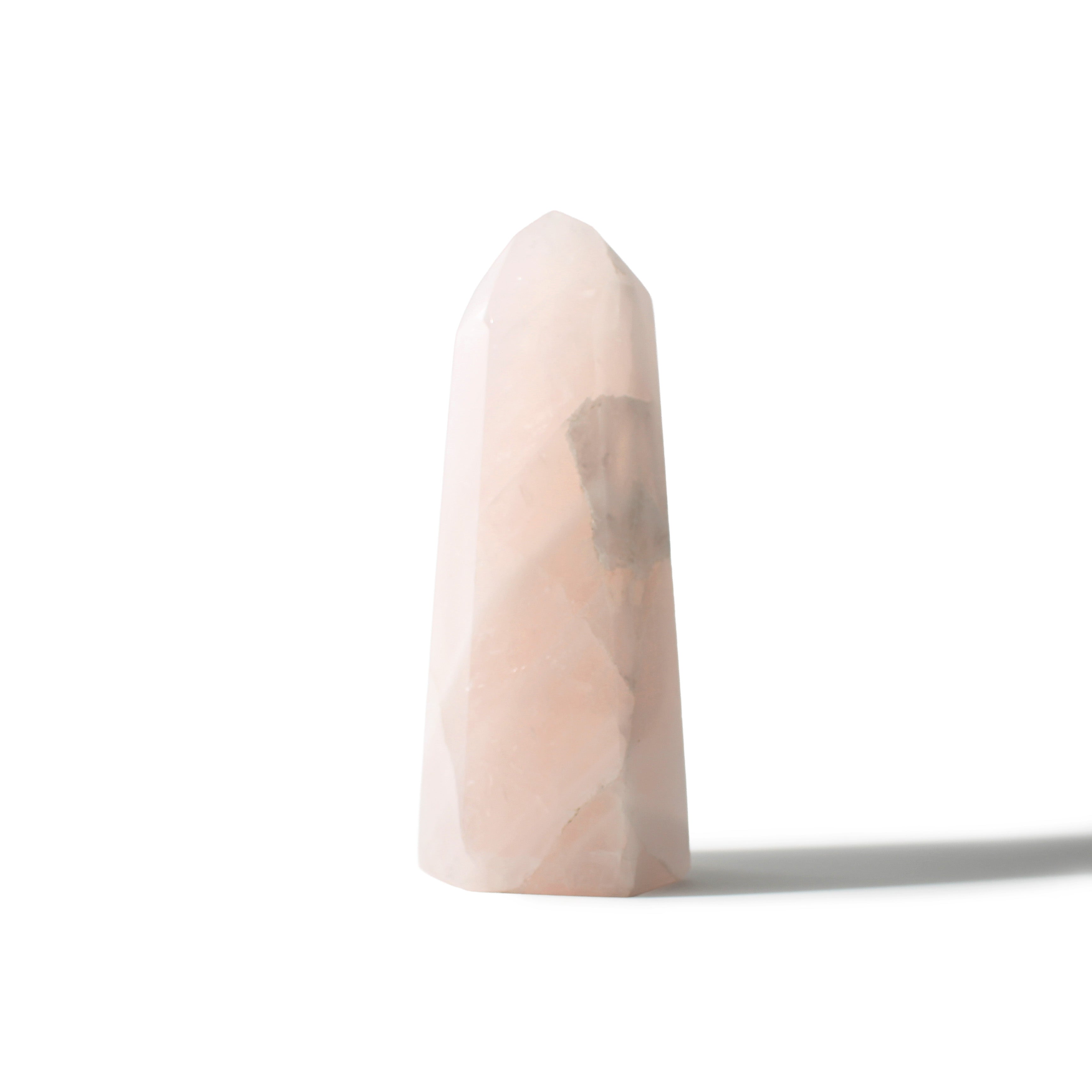 This Rose Quartz Generator stands 6" tall, showcasing soft blush-pink tones with gentle translucency, polished into a smooth, elegant point that radiates calming, heart-centered energy. Each piece highlights Rose Quartz's natural beauty and soothing presence.