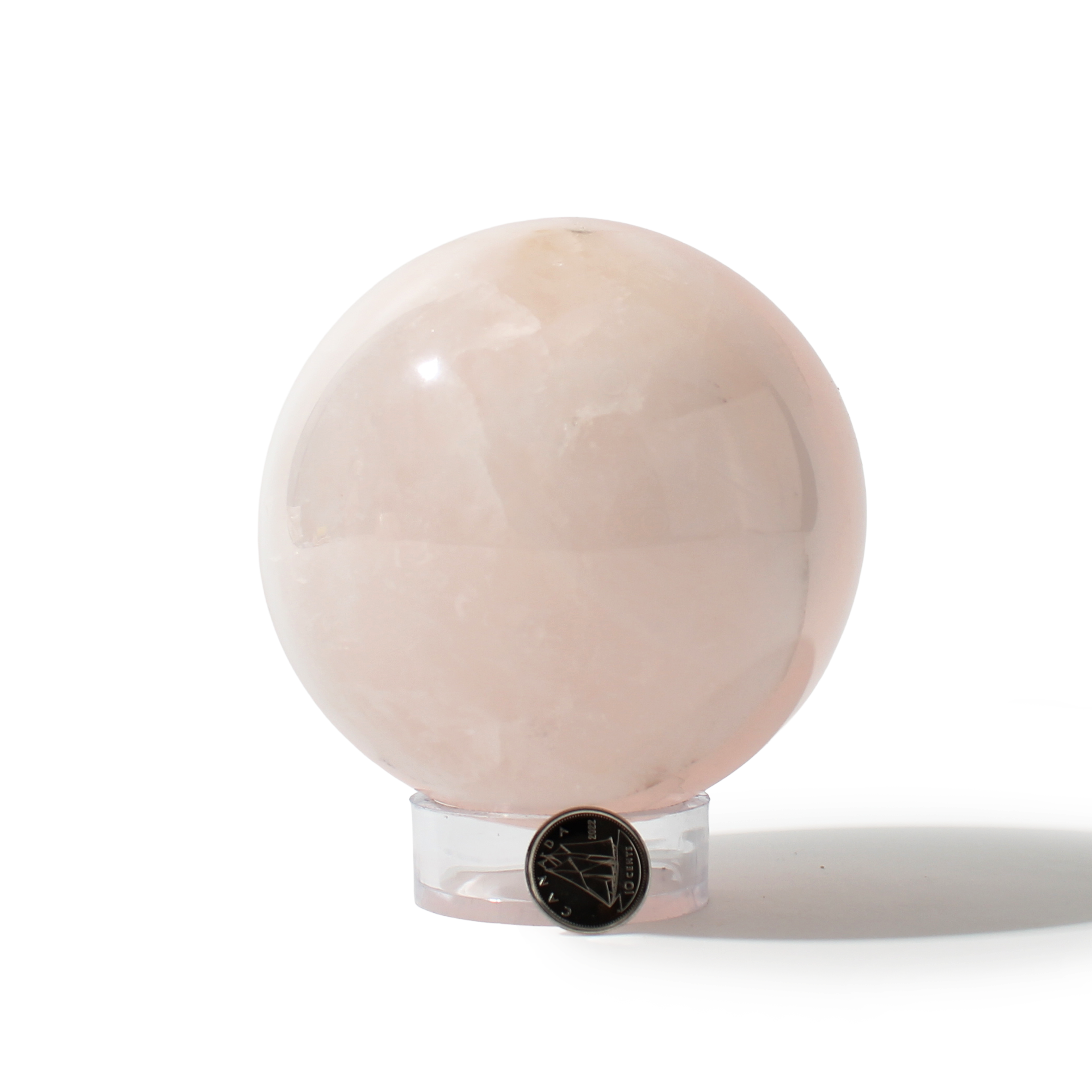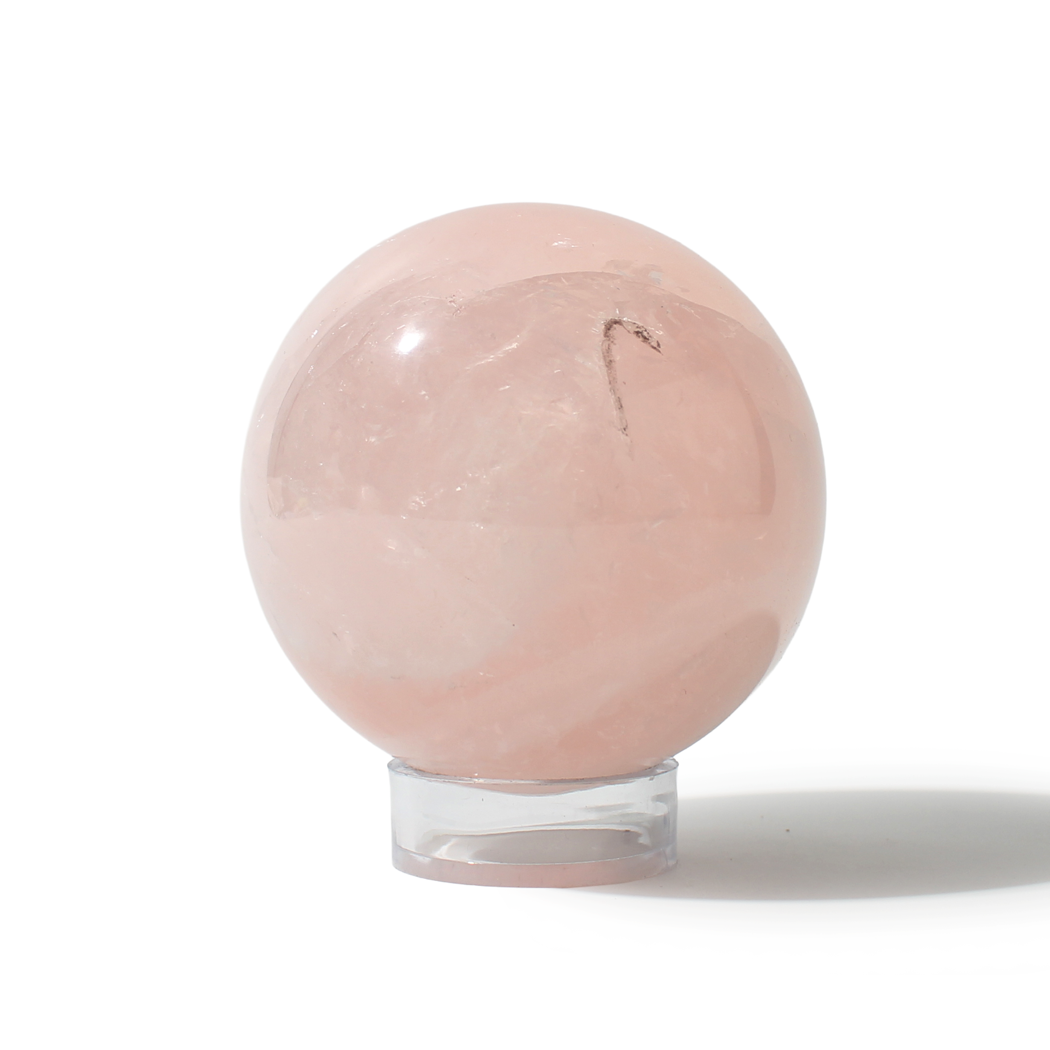 Rose Quartz Sphere Unique #116 - 3 5/8" across and features soft pink tones with a smooth, polished finish. Radiating gentle, loving energy in all directions, it’s ideal for emotional healing and heart-centered spaces.