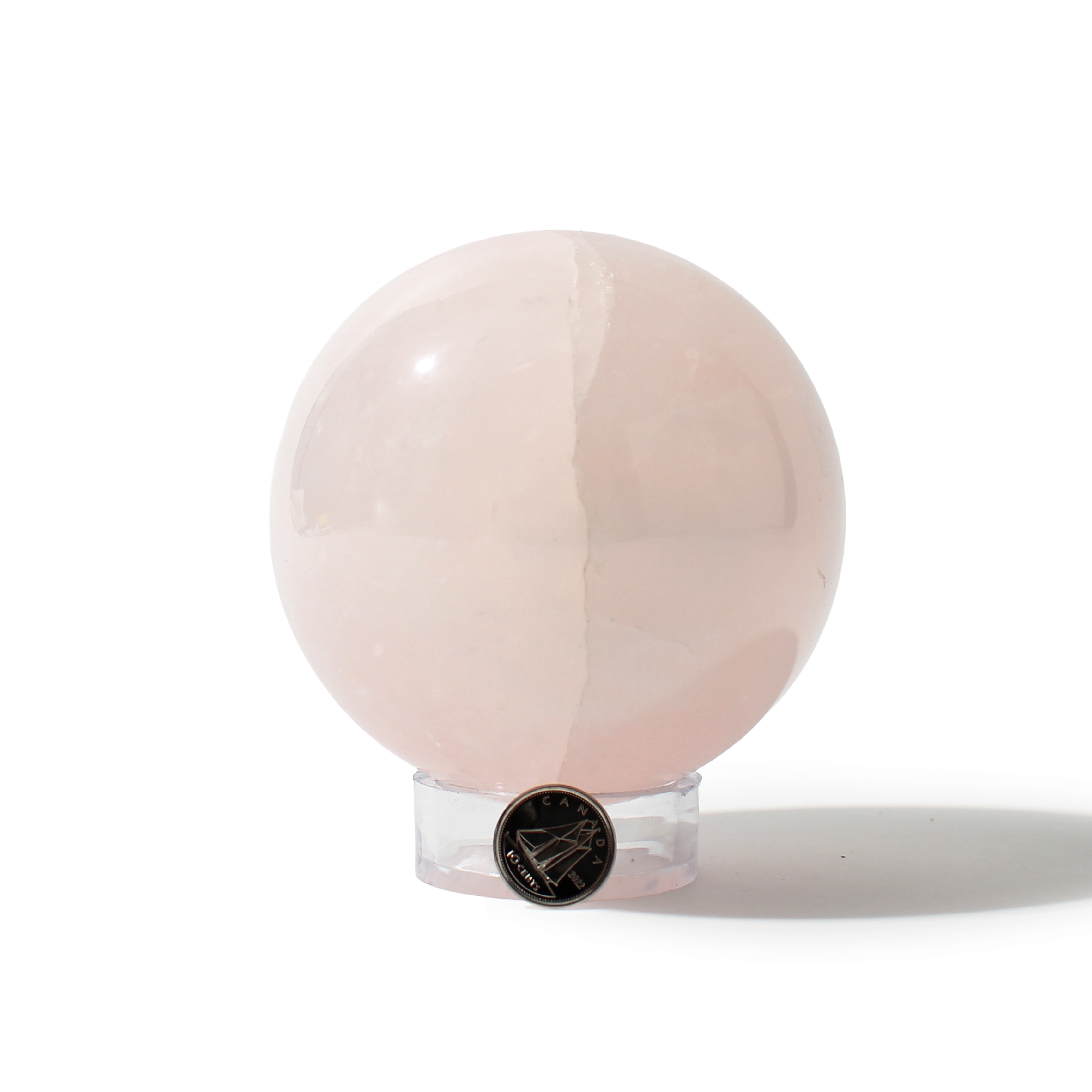 Rose Quartz Sphere Unique #144 - 3 1/2" across and features soft pink tones with a smooth, polished finish. Radiating gentle, loving energy in all directions, it’s ideal for emotional healing and heart-centered spaces.