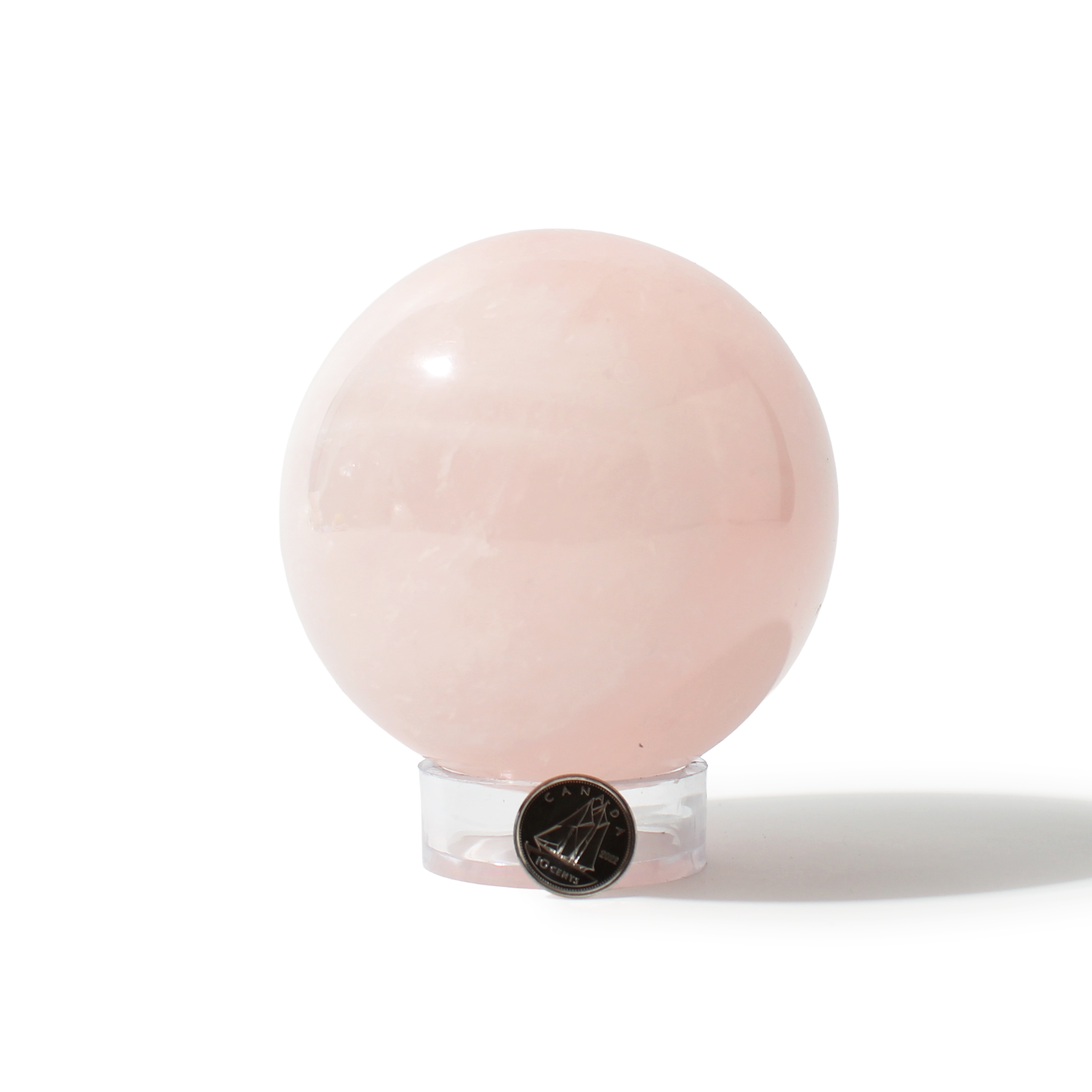 Rose Quartz Sphere Unique #177 - 3 3/8" across and features soft pink tones with a smooth, polished finish. Radiating gentle, loving energy in all directions, it’s ideal for emotional healing and heart-centered spaces.