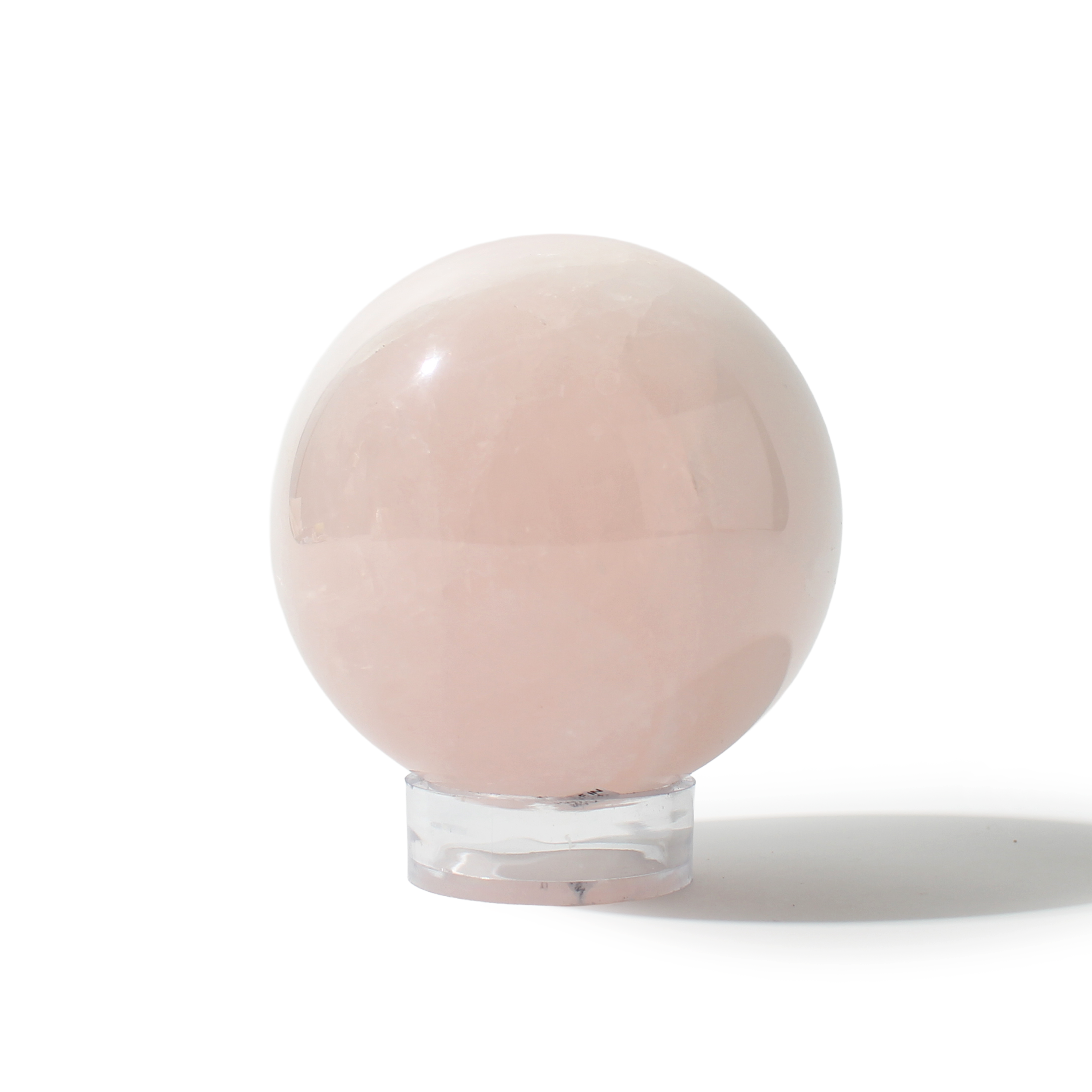 Rose Quartz Sphere Unique #81 - 3 1/2" across and features soft pink tones with a smooth, polished finish. Radiating gentle, loving energy in all directions, it’s ideal for emotional healing and heart-centered spaces.