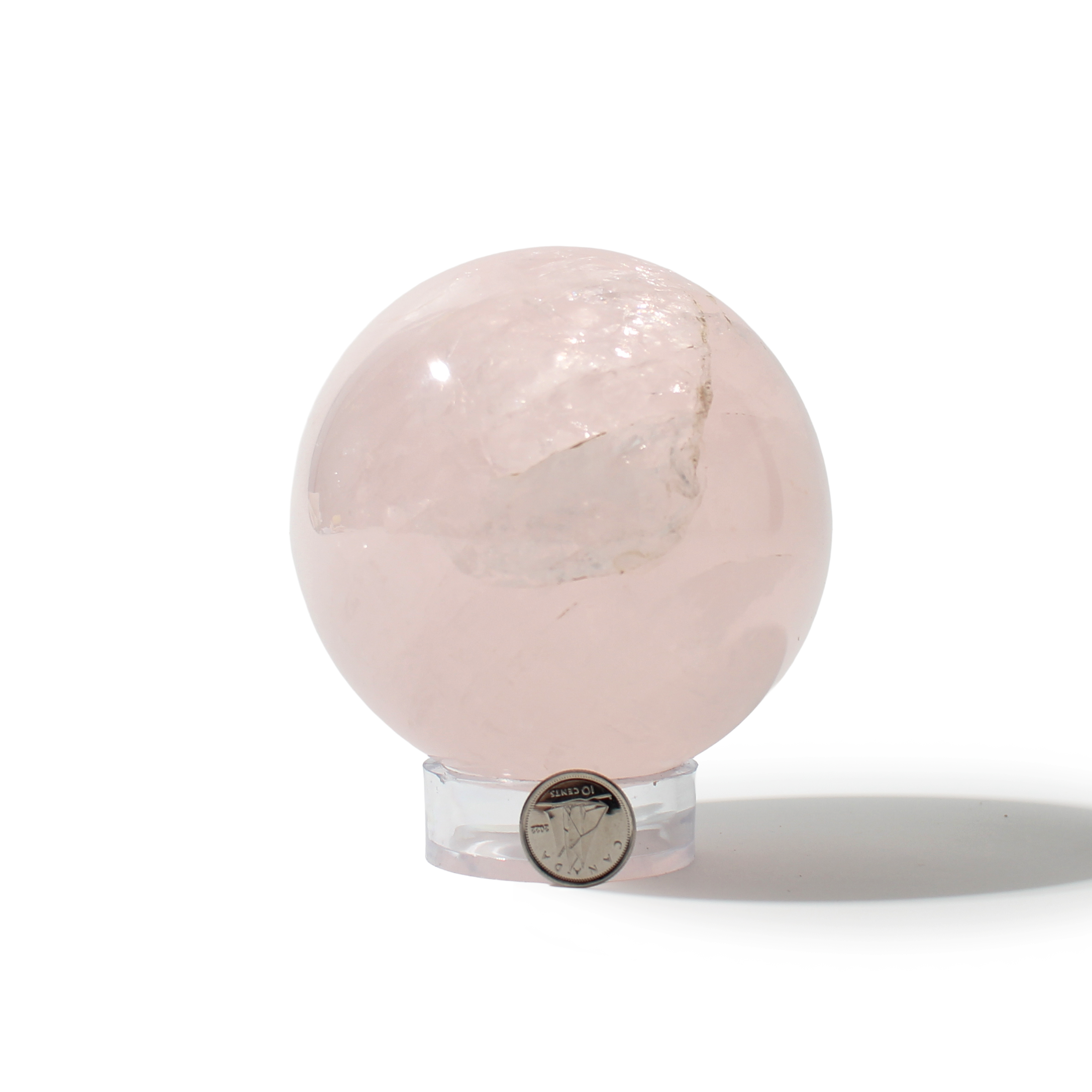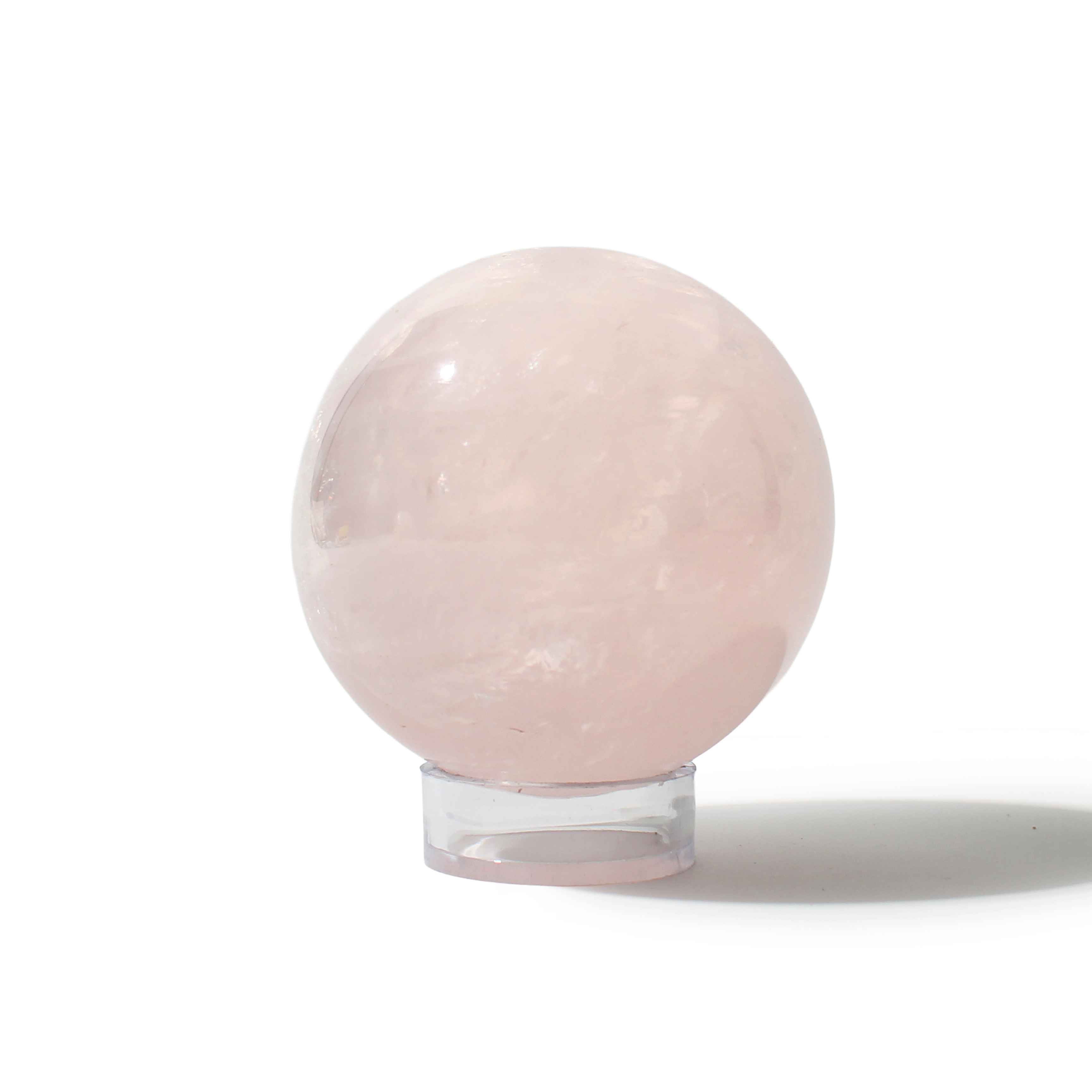 Rose Quartz Sphere Unique #82 - 3 1/2" across and features soft pink tones with a smooth, polished finish. Radiating gentle, loving energy in all directions, it’s ideal for emotional healing and heart-centered spaces.