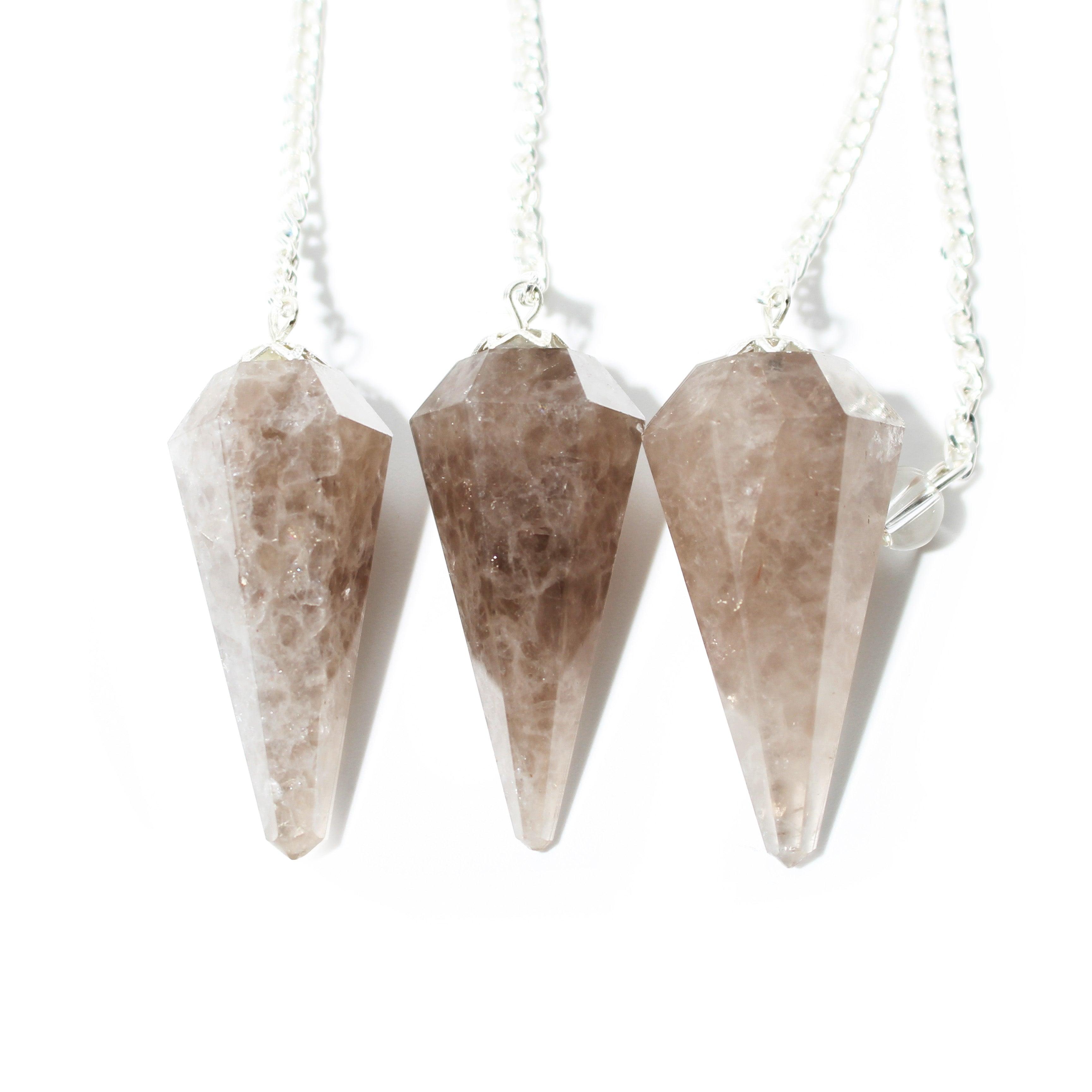 This pendulum is crafted from grounding Smoky Quartz, featuring six polished facets and a bead for enhanced energy flow.