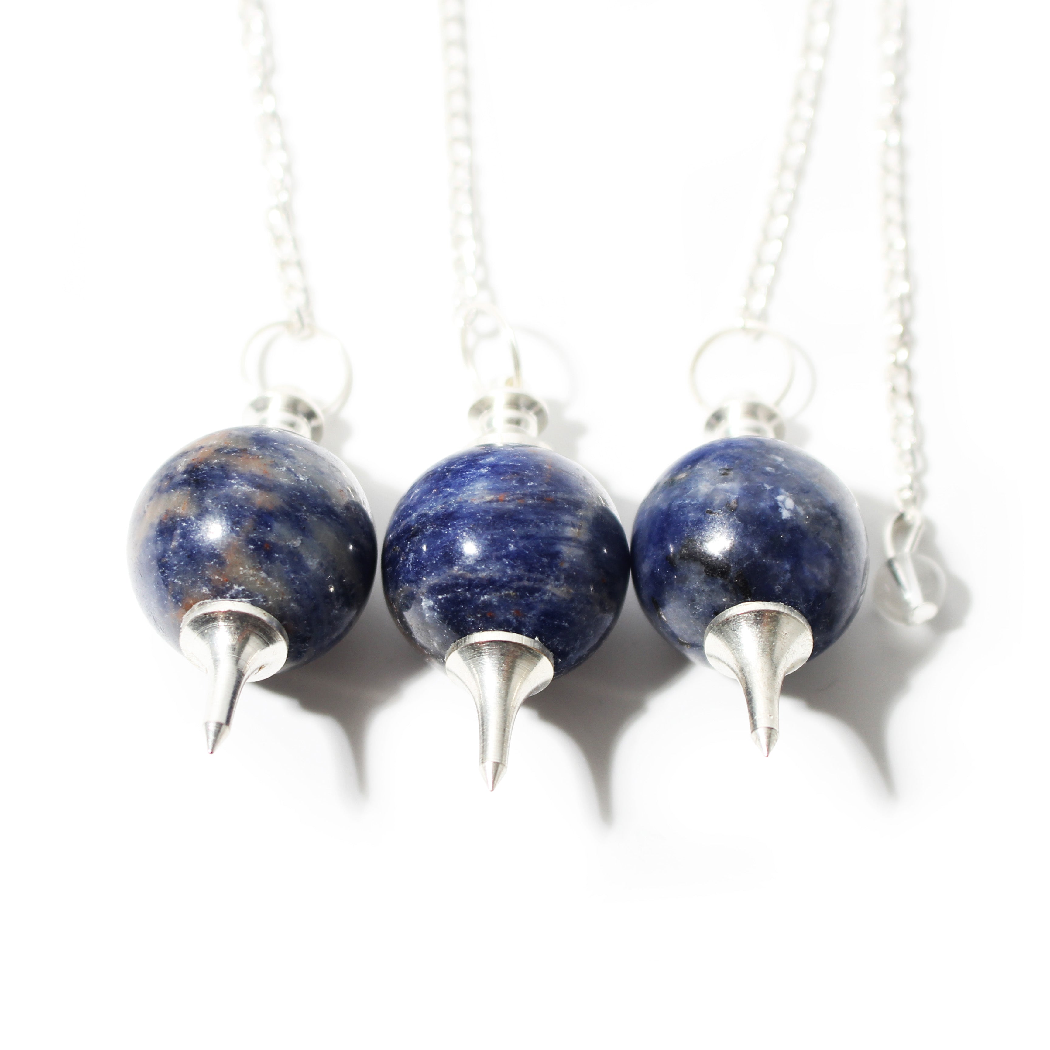 This 3-pack of Sodalite Ball and Point Pendulums features rich blue faceted points paired with smooth round beads, offering calm, balanced energy for divination, chakra work, or spiritual exploration.