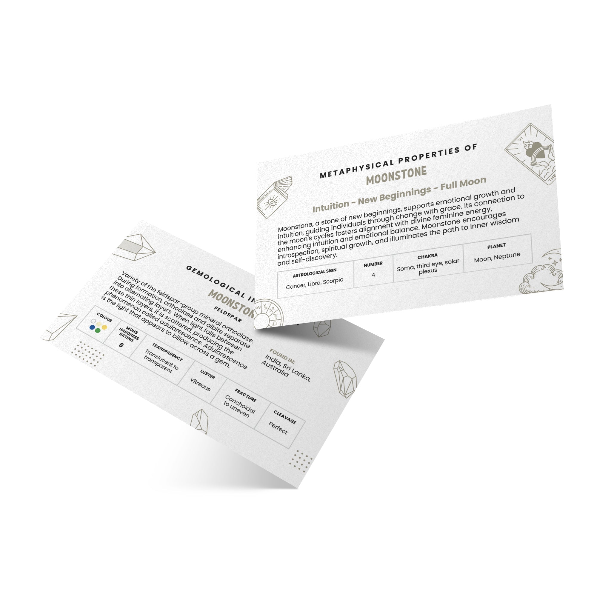 Skip the research with our Stone Meaning Cards - beautifully redesigned and packed with info. This pack contains 10 cards about one stone, including gemological details, metaphysical benefits, astrological ties, and more. Like a "Nutrition Facts" label for crystals, these cards are perfect for collectors, sellers, and spiritual seekers alike. No logos, no sign-ups. Just clear, accessible crystal knowledge at your fingertips.