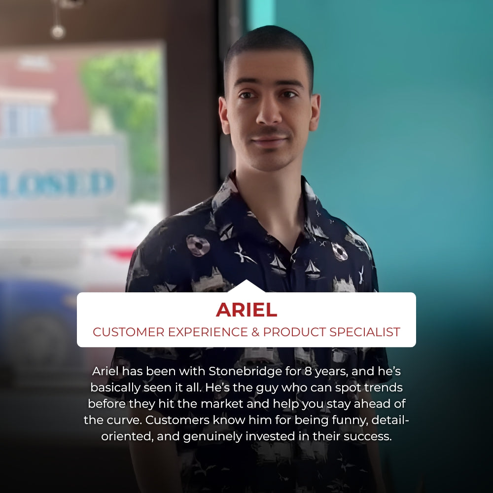 Friendly, funny, and detail-oriented, Ariel is a pro at spotting best sellers and reading the market. He’ll help you curate collections that actually move, and explain the “why” behind each pick. Fun fact: he’s a kickboxer and super tech-forward.