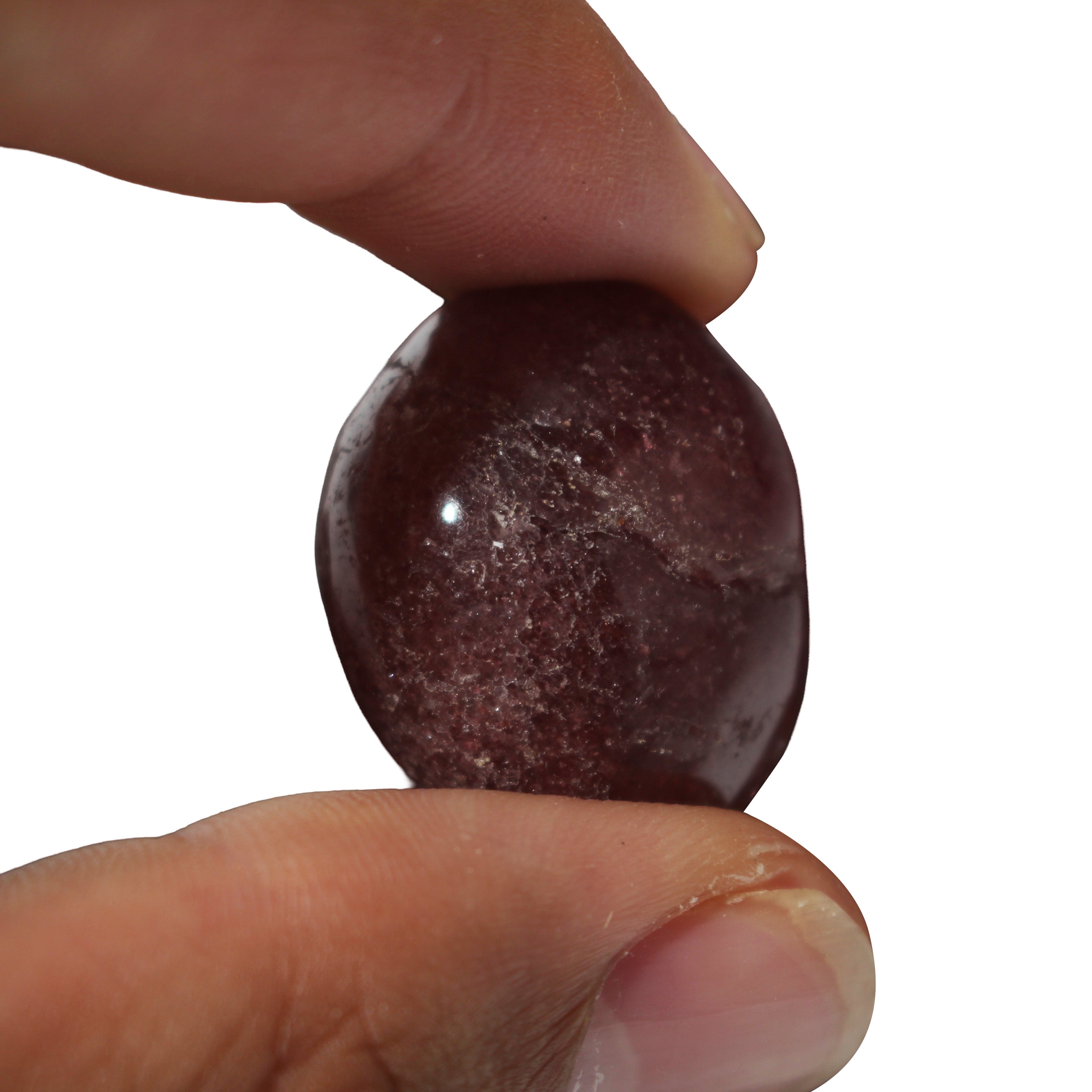 These tumbled stones, with their unique reddish-pink hues reminiscent of ripe strawberries, are polished to a smooth finish, highlighting the delicate inclusions and sparkling flecks within. Strawberry Quartz, with its gentle vibrations, is believed to have an ability to instill a sense of love, gratitude, and generosity in those who connect with it.