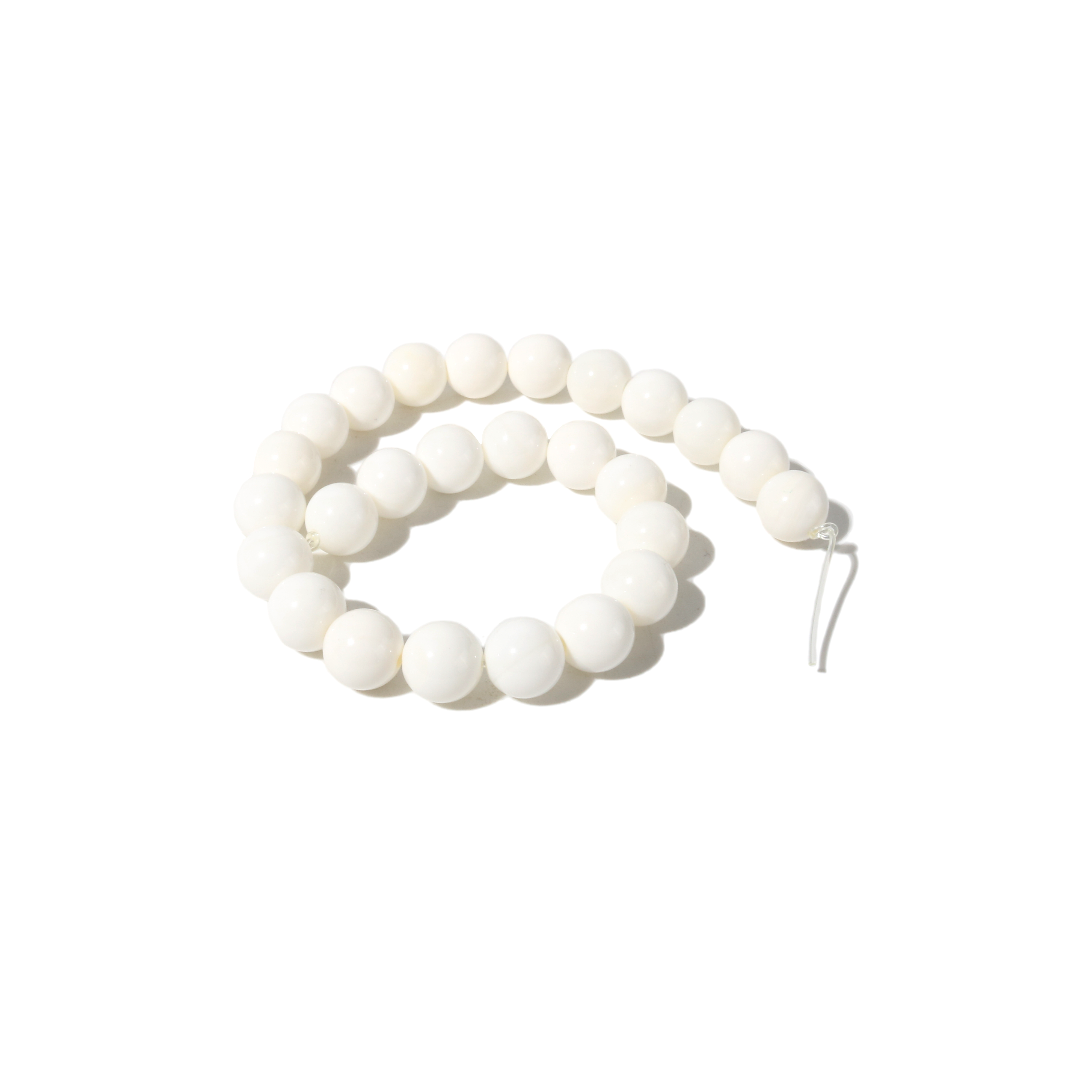 This Tridacna Round Strand features pure white, glossy beads with a soft, creamy sheen. The clean, neutral color offers a calming elegance that complements any jewelry design.