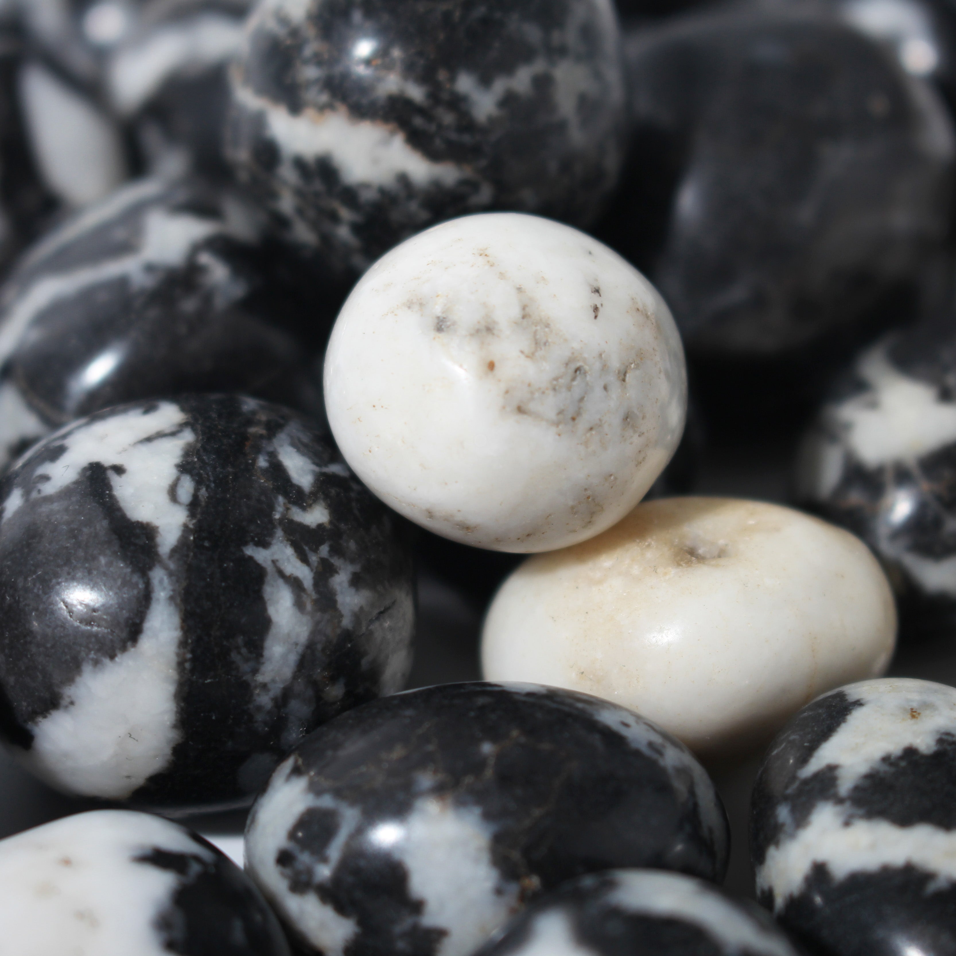 These Zebra Jasper Tumbled Stones feature striking black-and-white banding, polished smooth for a bold, high-contrast finish. Each stone carries a wild, balanced energy that’s both grounding and motivating.